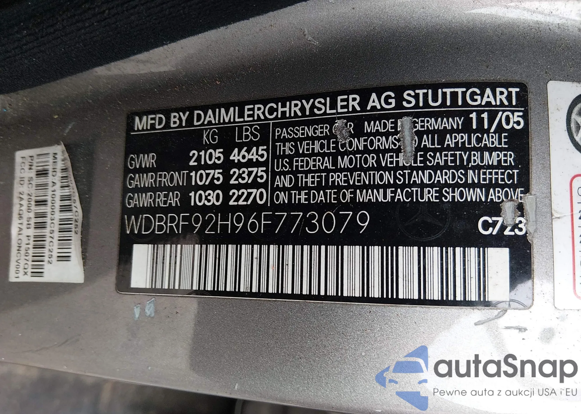 Samochód Mercedes-Benz C-klasse 2006 (VIN WDBRF92H96F773079) sprzedaje go niezweryfikowany sprzedawca. Zalecamy raport Carfax i potwierdzenie możliwości rejestracji pojazdu przed zakupem.