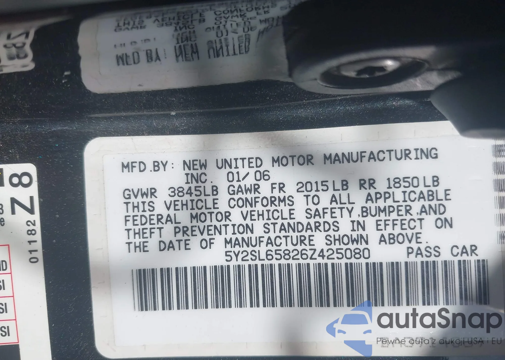 • VIN: 5Y2SL65826Z425080