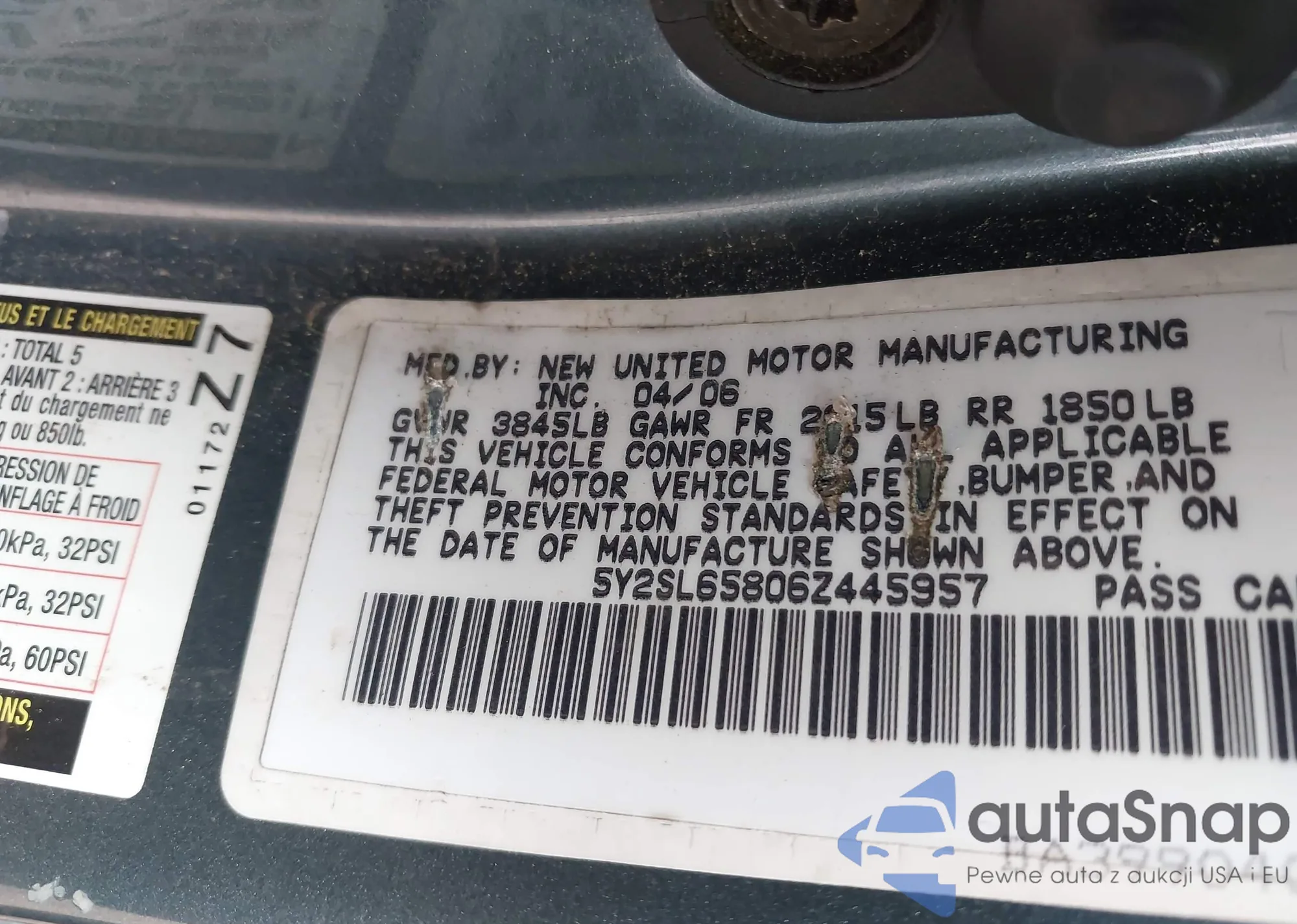 • VIN: 5Y2SL65806Z445957