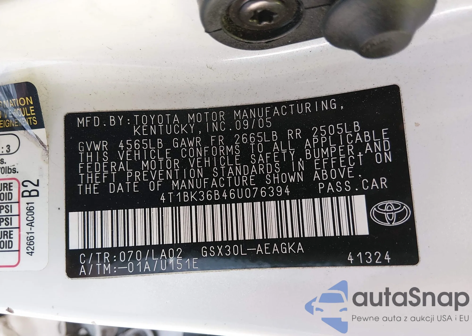 Samochód Toyota Avalon 2006 (VIN 4T1BK36B46U076394) nie był wcześniej licytowany. Dokumenty są czyste, przebieg odpowiada lub jest niższy niż średnia rynku. Sprzedaje go firma ubezpieczeniowa – polecamy zakup. Dostawa do portu zajmie ok. 6–8 tygodni.