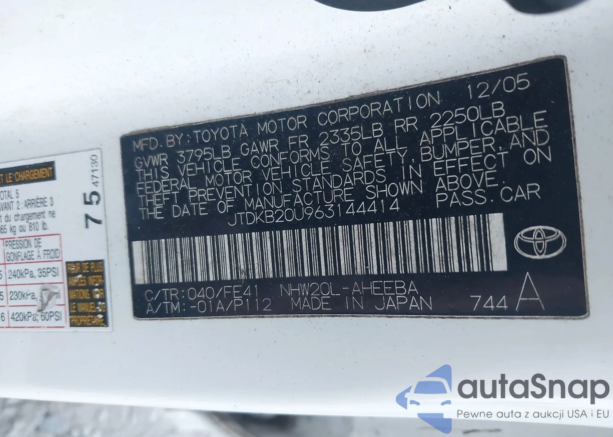 Samochód Toyota Prius 2006 (VIN JTDKB20U963144414) nie był wcześniej licytowany. Dokumenty są czyste, przebieg odpowiada lub jest niższy niż średnia rynku. Sprzedaje go firma ubezpieczeniowa – polecamy zakup. Dostawa do portu zajmie ok. 6–8 tygodni.