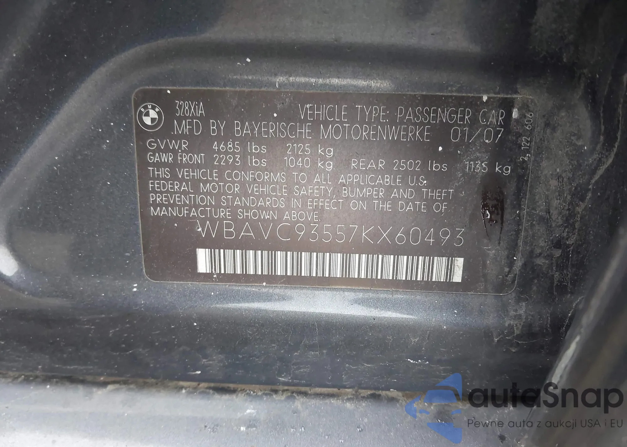 • VIN: WBAVC93557KX60493