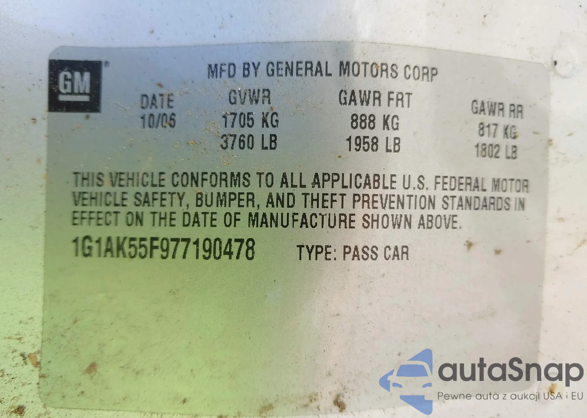 • VIN: 1G1AK55F977190478