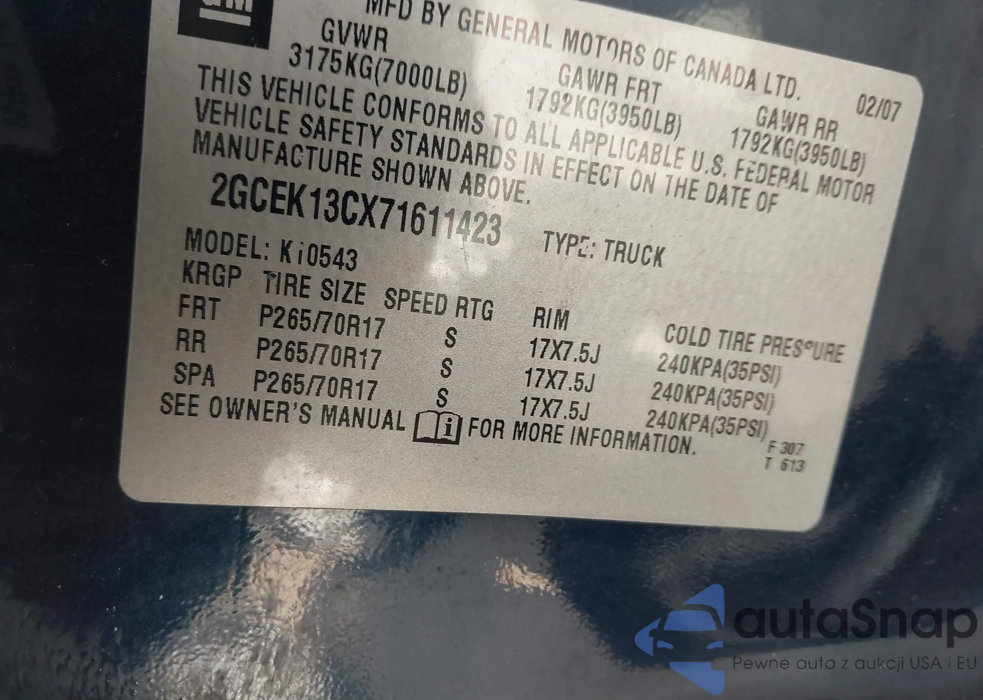 Samochód Chevrolet Silverado 2007 (VIN 2GCEK13CX71611423) nie był wcześniej licytowany. Dokumenty są czyste, przebieg odpowiada lub jest niższy niż średnia rynku. Sprzedaje go firma ubezpieczeniowa – polecamy zakup. Dostawa do portu zajmie ok. 6–8 tygodni.
