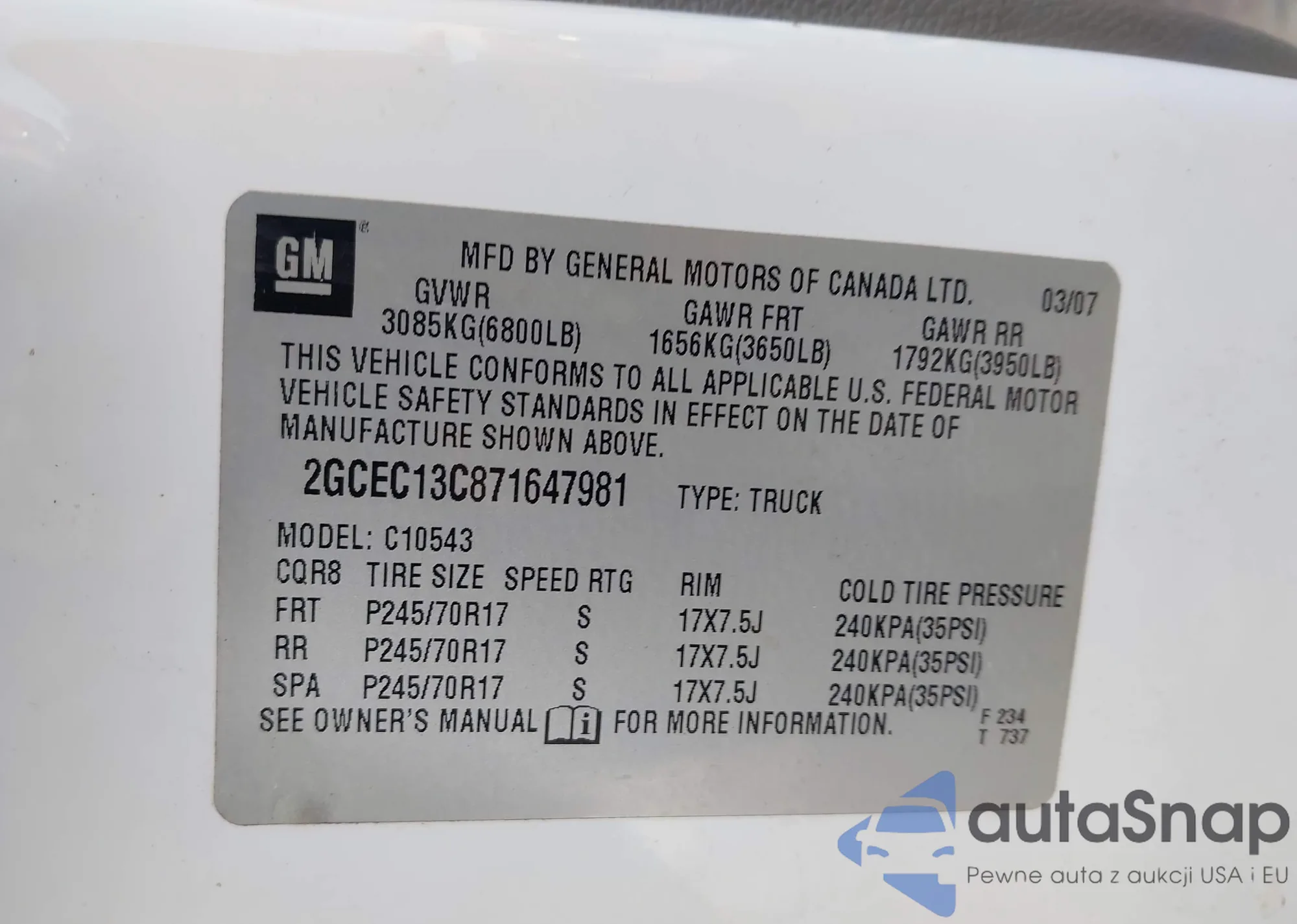 Samochód Chevrolet Silverado 2007 (VIN 2GCEC13C871647981) nie był wcześniej licytowany. Dokumenty są czyste, przebieg odpowiada lub jest niższy niż średnia rynku. Sprzedaje go firma ubezpieczeniowa – polecamy zakup. Dostawa do portu zajmie ok. 6–8 tygodni.