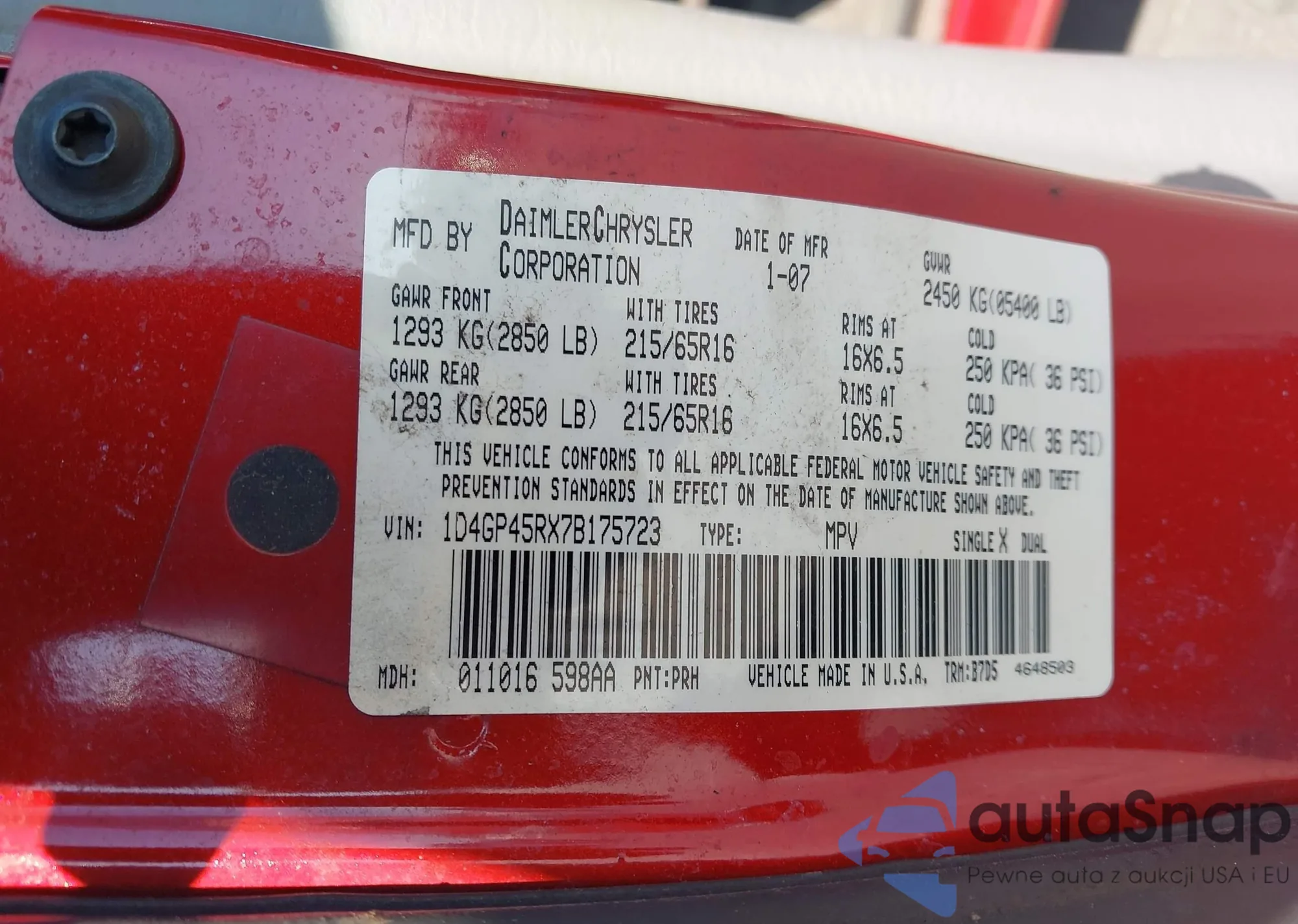 Samochód Dodge Caravan 2007 (VIN 1D4GP45RX7B175723) nie był wcześniej licytowany. Dokumenty są czyste, przebieg odpowiada lub jest niższy niż średnia rynku. Sprzedaje go firma ubezpieczeniowa – polecamy zakup. Dostawa do portu zajmie ok. 6–8 tygodni.