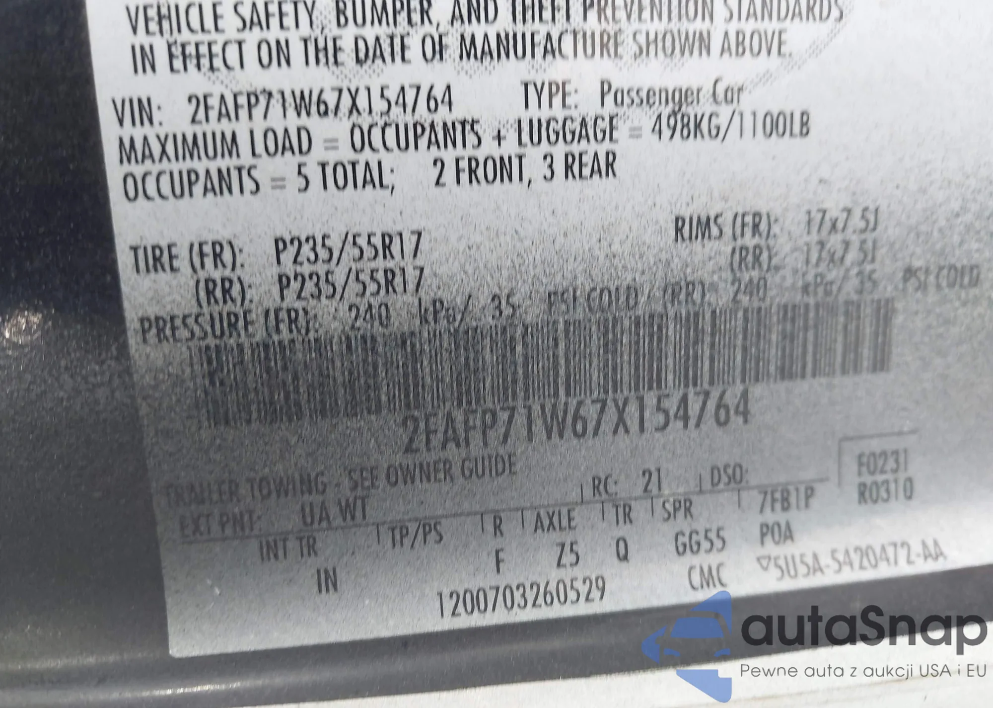 Samochód Ford Crown Victoria 2007 (VIN 2FAFP71W67X154764) nie był wcześniej licytowany. Dokumenty są czyste, przebieg odpowiada lub jest niższy niż średnia rynku. Sprzedaje go firma ubezpieczeniowa – polecamy zakup. Dostawa do portu zajmie ok. 6–8 tygodni.
