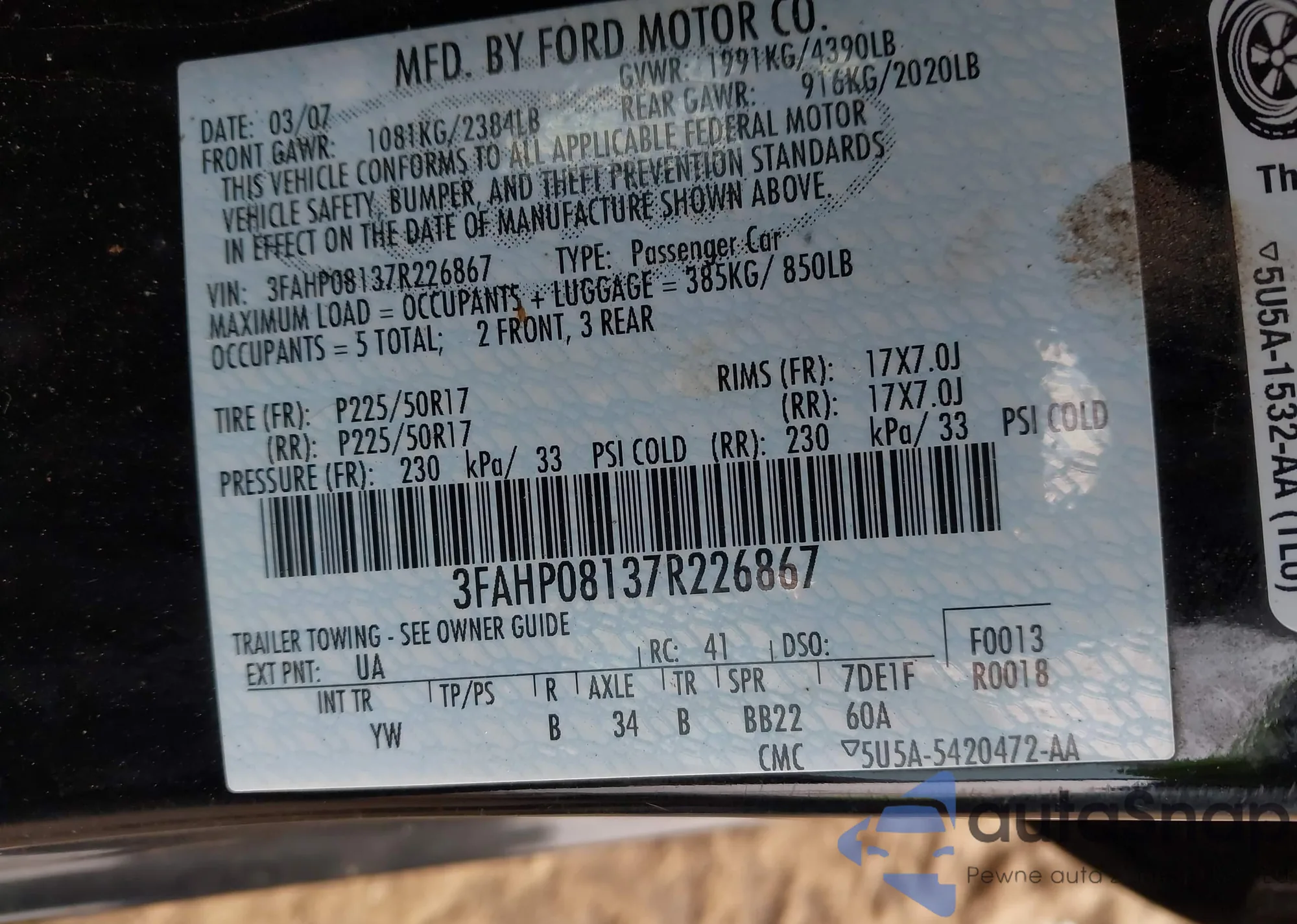 VIN: 3FAHP08137R226867