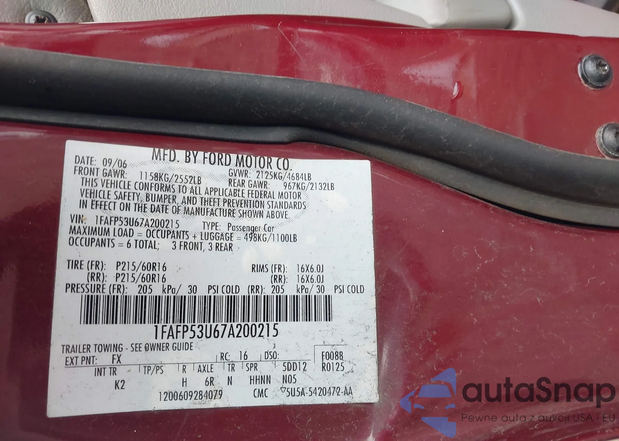 Samochód Ford Taurus 2007 (VIN 1FAFP53U67A200215) nie był wcześniej licytowany. Dokumenty są czyste, przebieg odpowiada lub jest niższy niż średnia rynku. Sprzedaje go firma ubezpieczeniowa – polecamy zakup. Dostawa do portu zajmie ok. 6–8 tygodni.