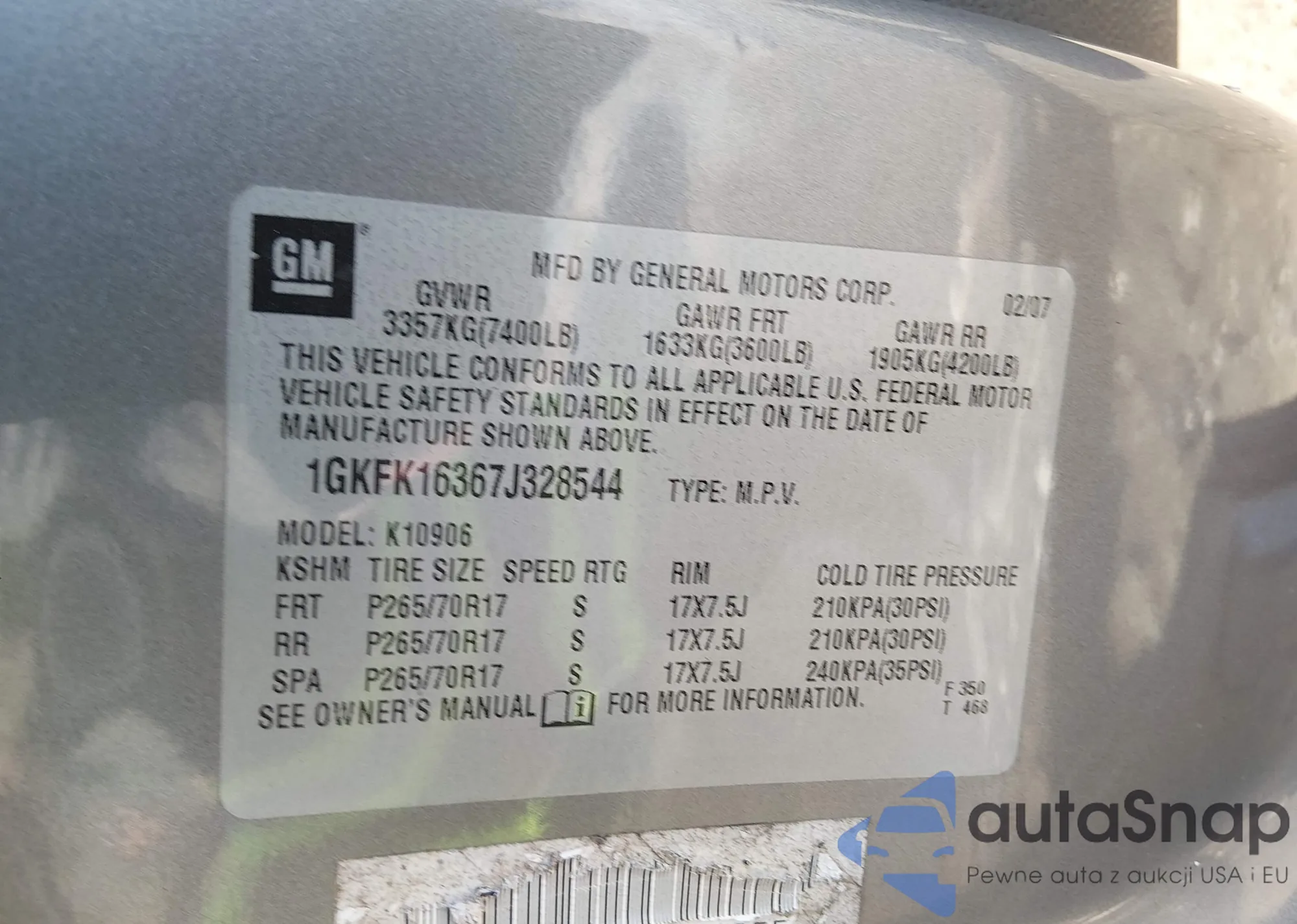 VIN: 1GKFK16367J328544