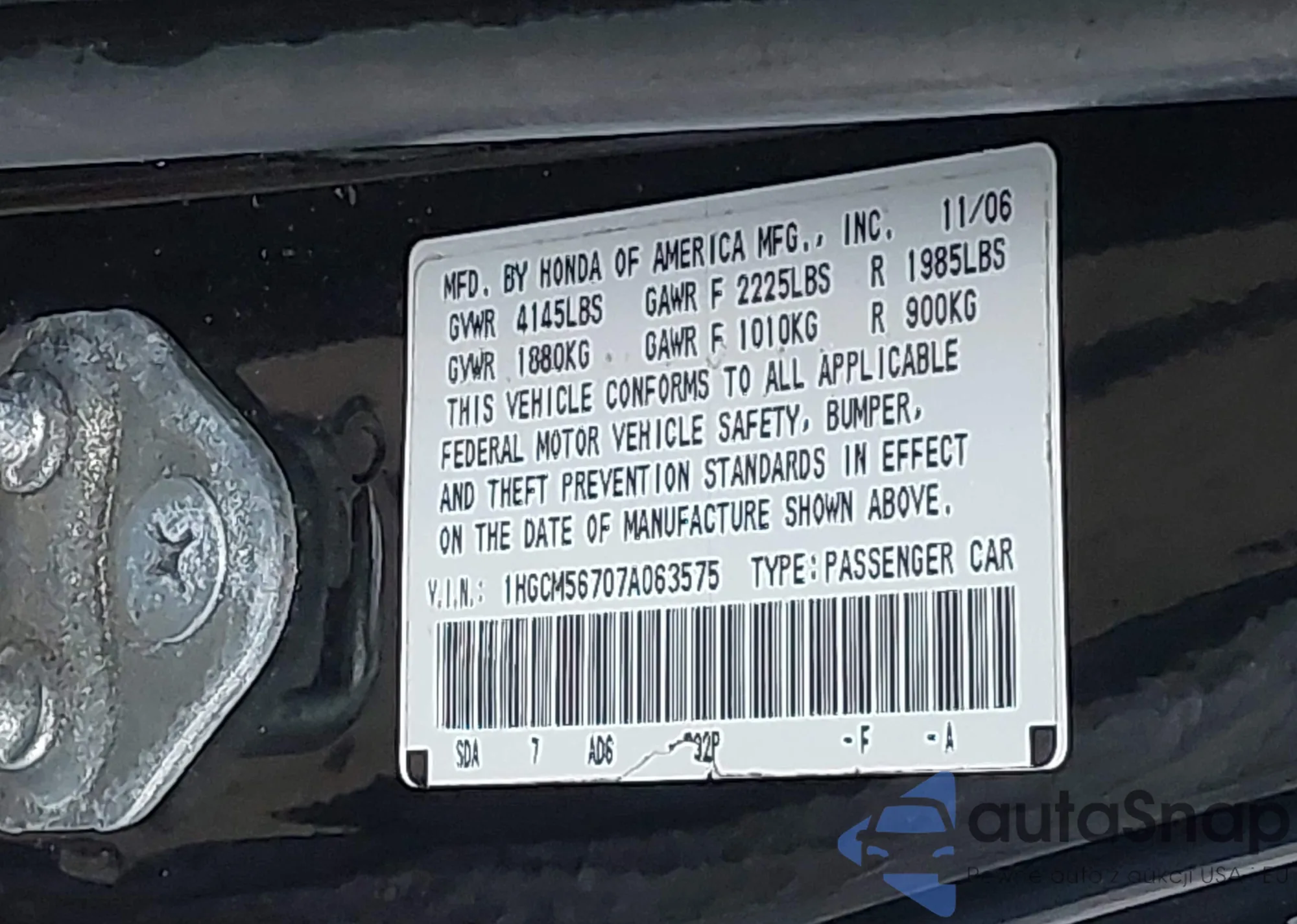 VIN: 1HGCM56707A063575