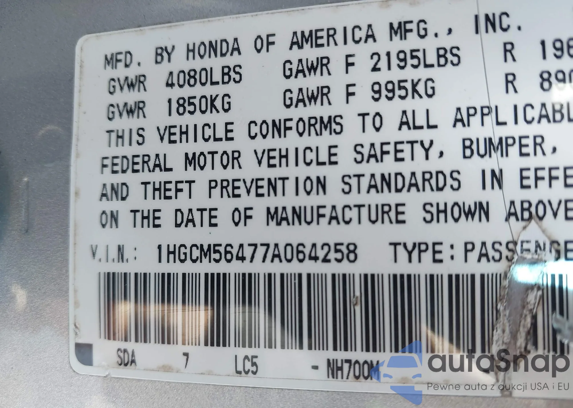 VIN: 1HGCM56477A064258
