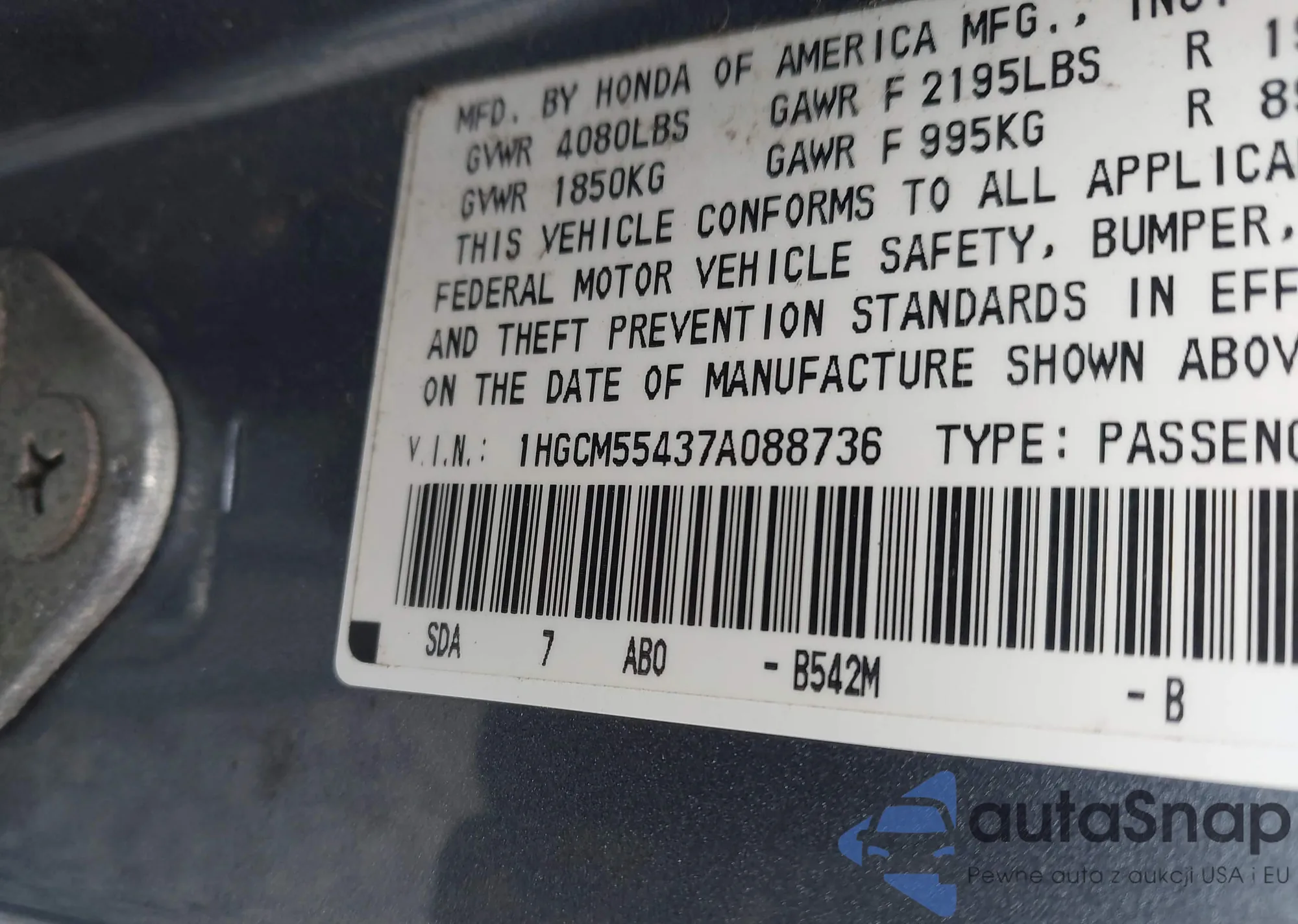 VIN: 1HGCM55437A088736