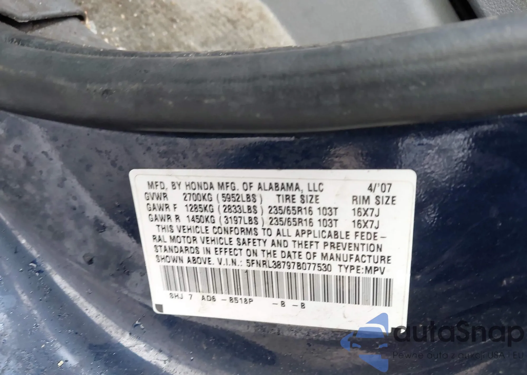 Samochód Honda Odyssey 2007 (VIN 5FNRL38797B077530) był już licytowany 1 razy i/lub sprzedaje go niezweryfikowany sprzedawca. Zalecamy raport Carfax i potwierdzenie możliwości rejestracji pojazdu przed zakupem.