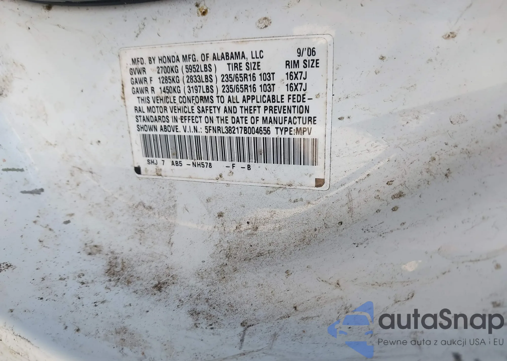VIN: 5FNRL38217B004656