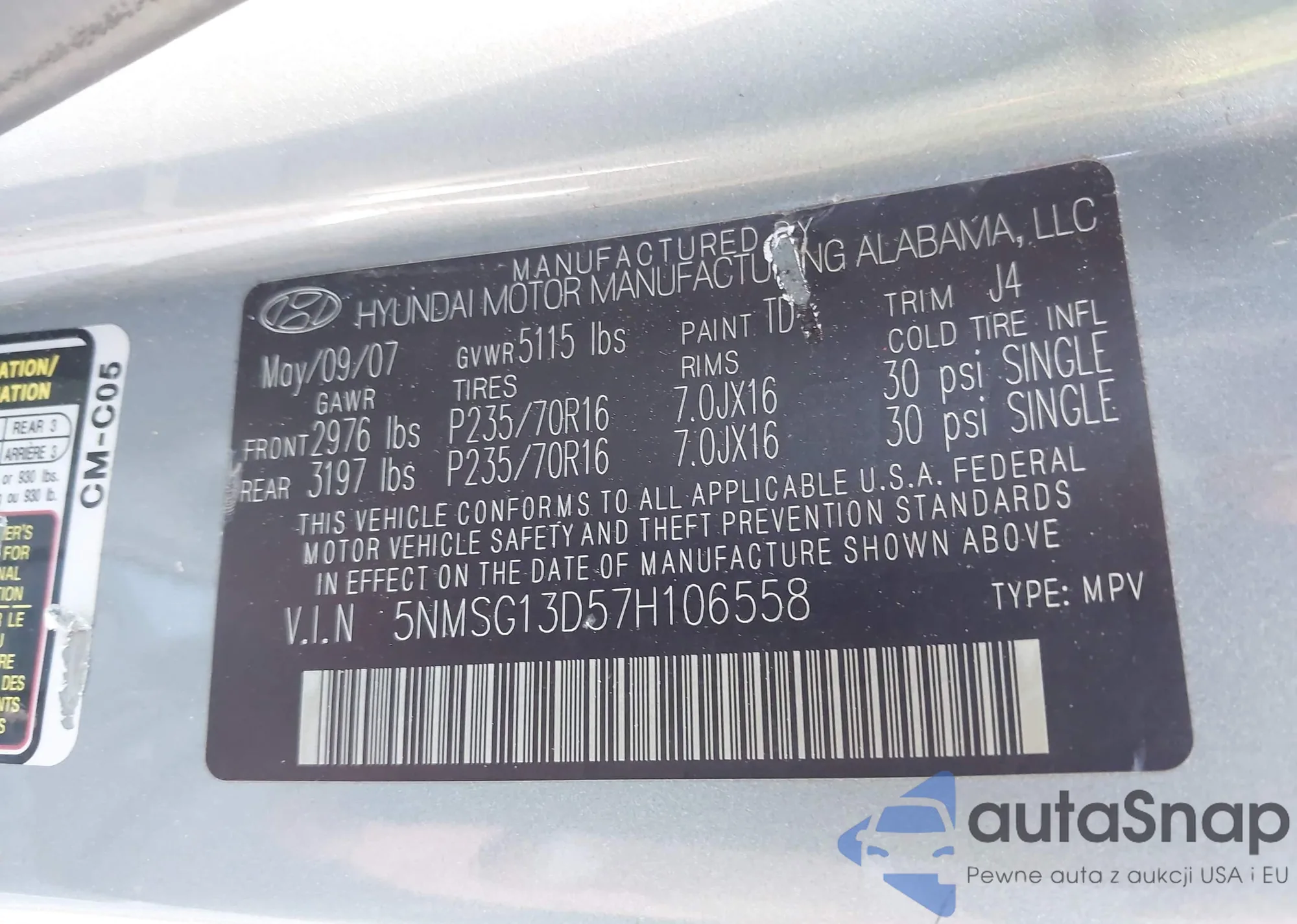 VIN: 5NMSG13D57H106558