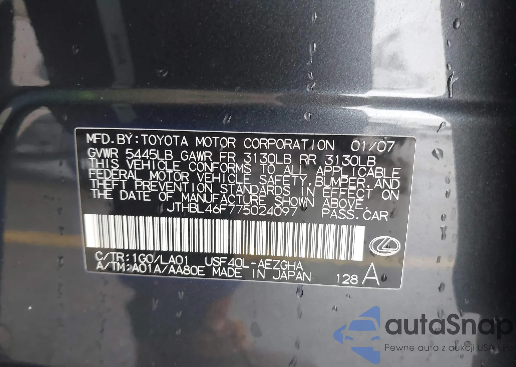 VIN: JTHBL46F775024097