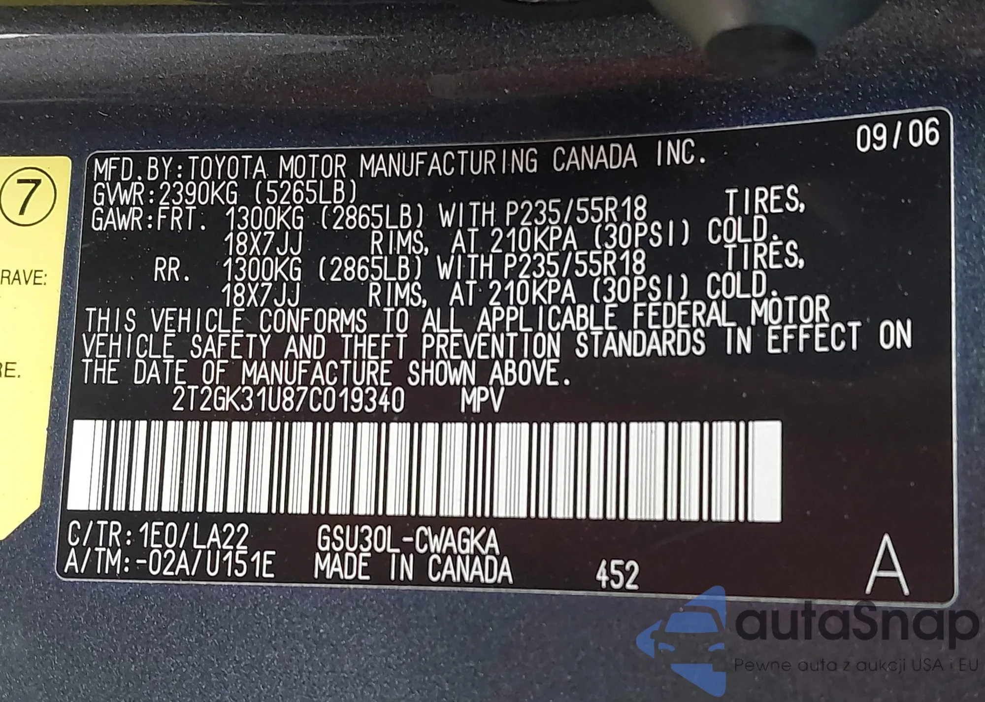 • VIN: 2T2GK31U87C019340