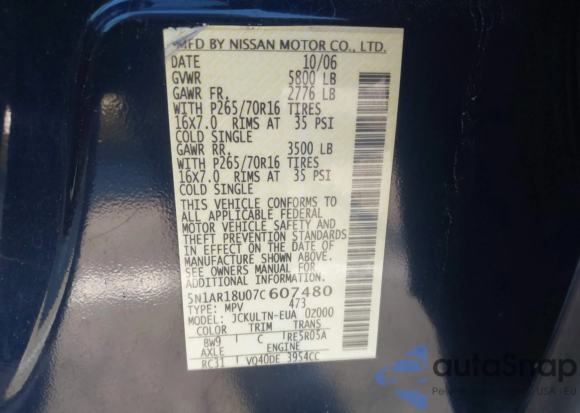 • VIN: 5N1AR18U07C607480