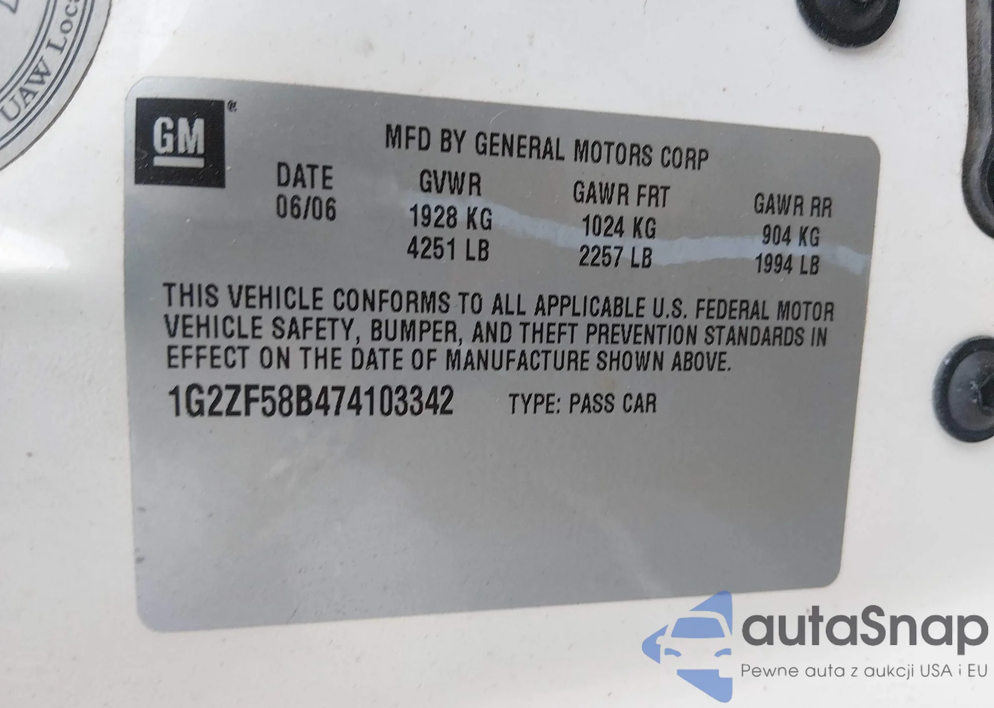 • VIN: 1G2ZF58B474103342