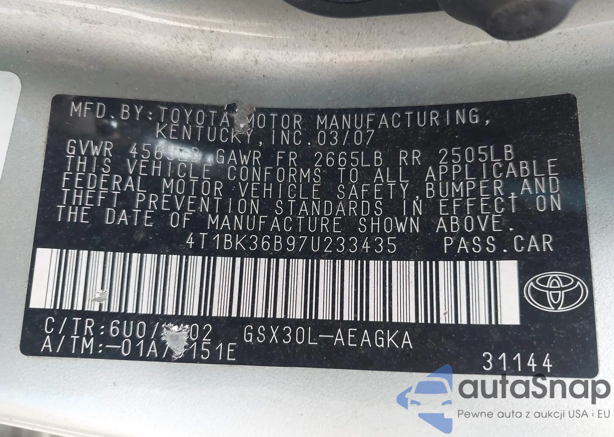 4T1BK36B97U233435 IAAI