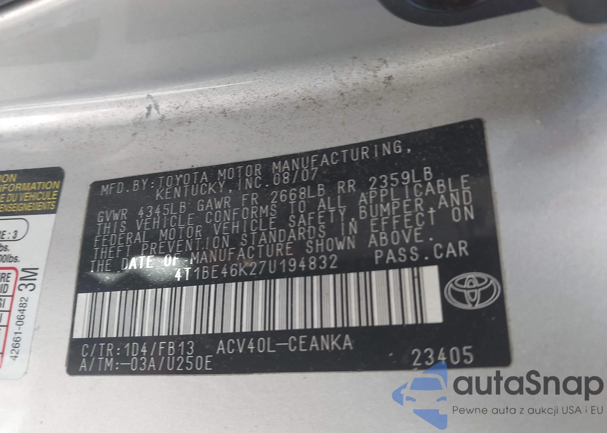 • VIN: 4T1BE46K27U194832