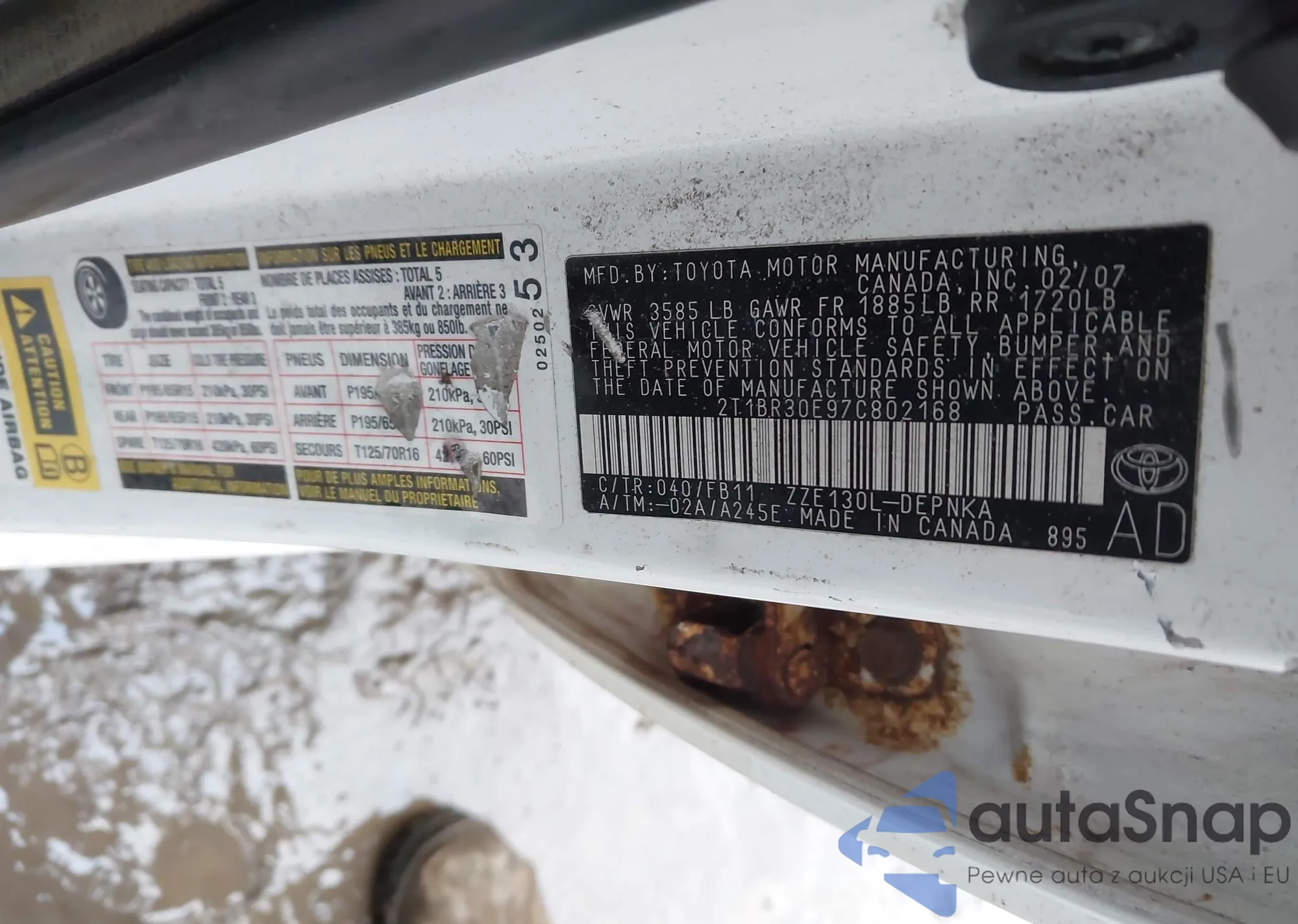 VIN: 2T1BR30E97C802168