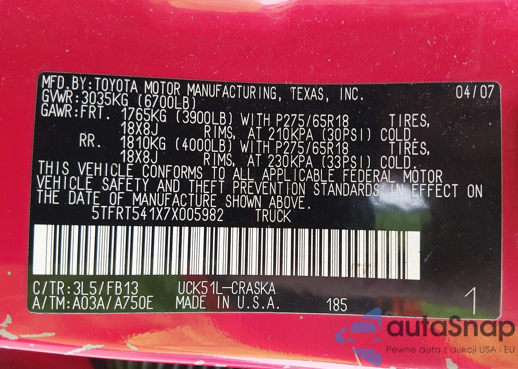VIN: 5TFRT541X7X005982