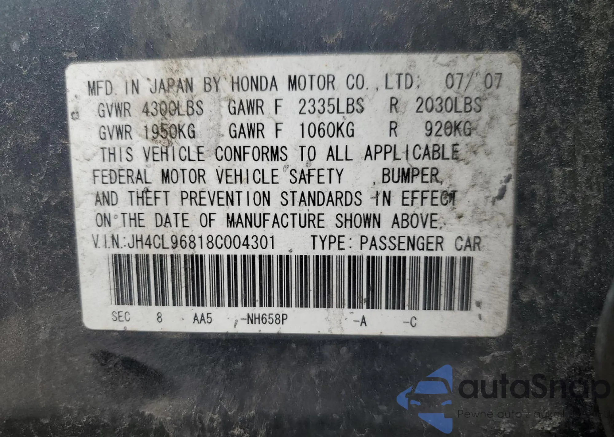 VIN: JH4CL96818C004301