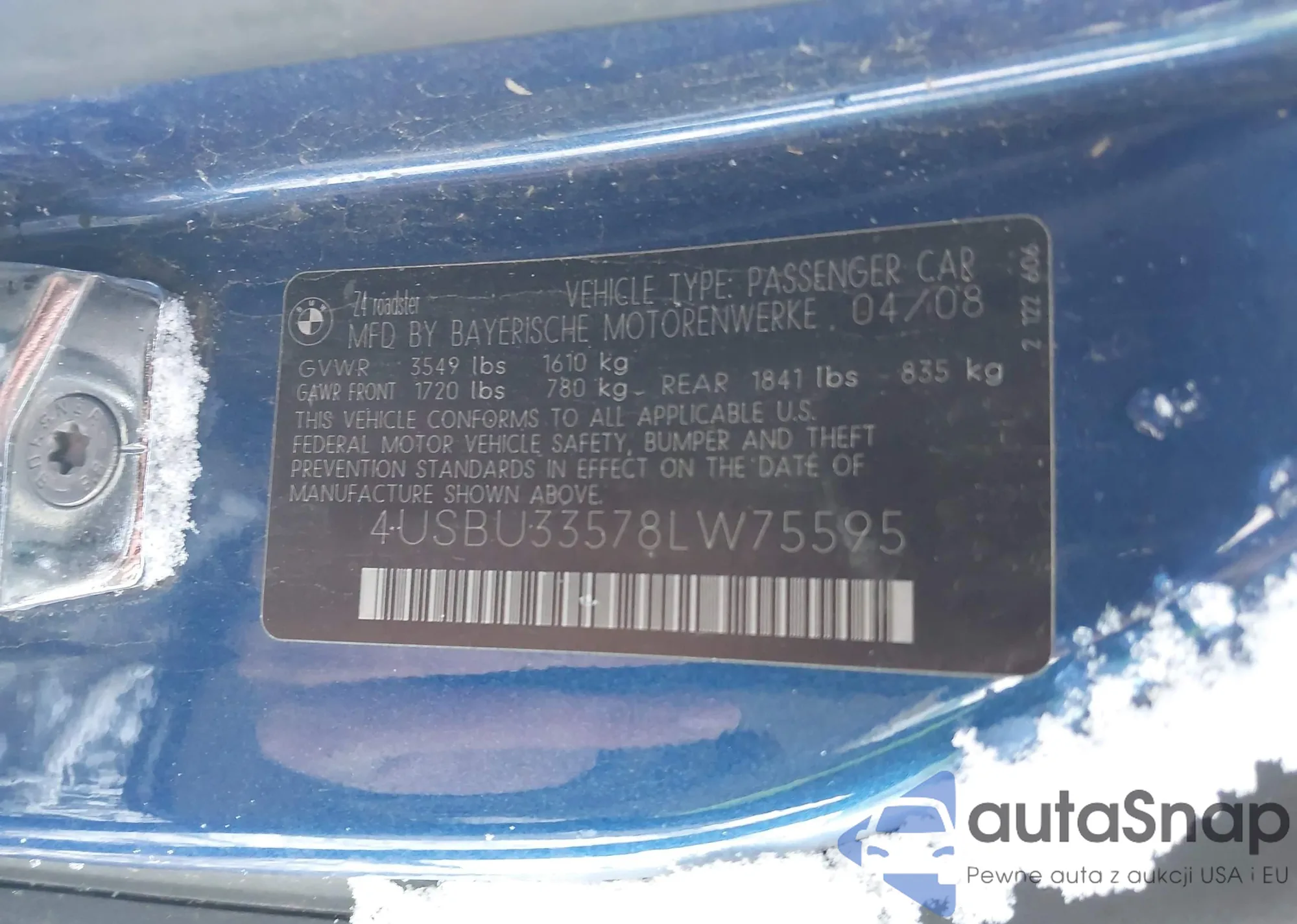VIN: 4USBU33578LW75595