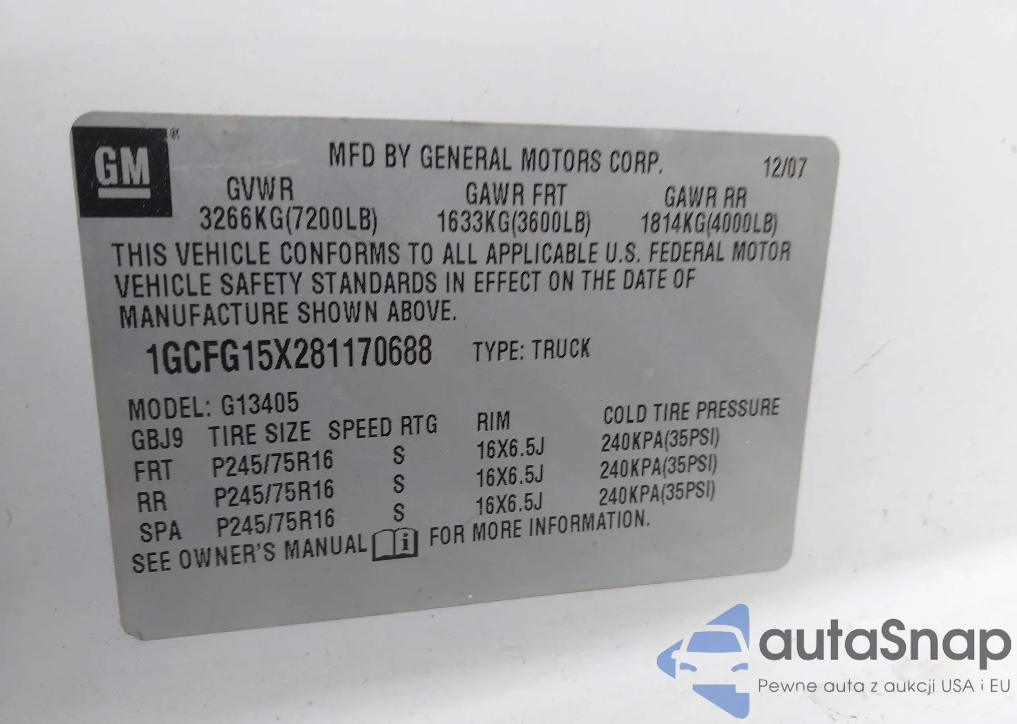 VIN: 1GCFG15X281170688