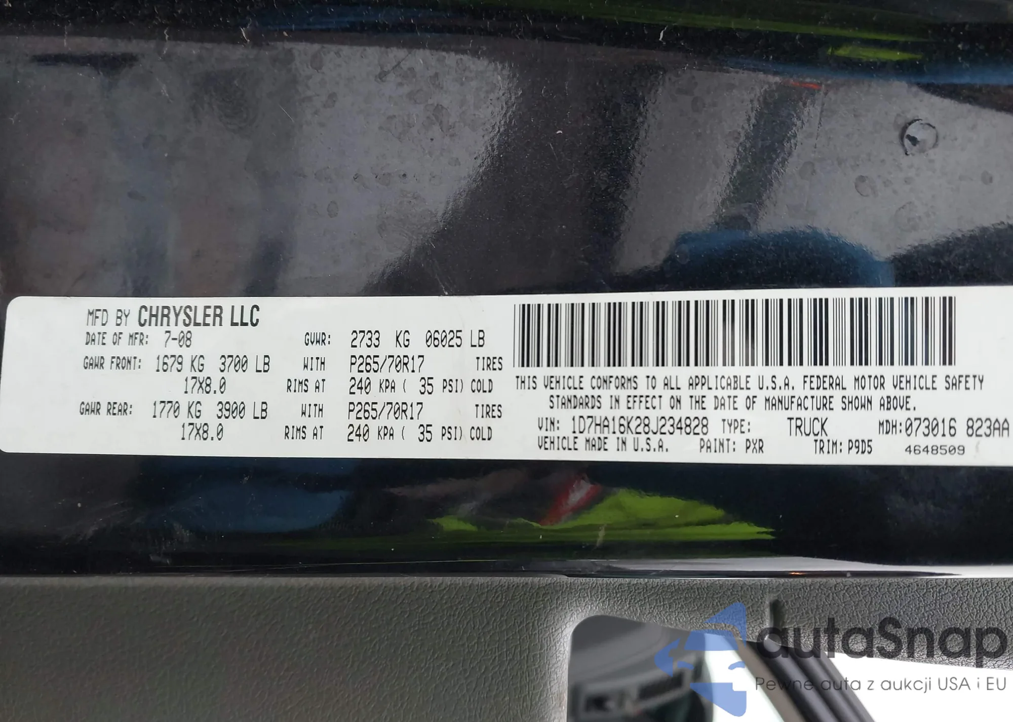 Samochód Dodge RAM 2008 (VIN 1D7HA16K28J234828) nie był wcześniej licytowany. Dokumenty są czyste, przebieg odpowiada lub jest niższy niż średnia rynku. Sprzedaje go firma ubezpieczeniowa – polecamy zakup. Dostawa do portu zajmie ok. 6–8 tygodni.