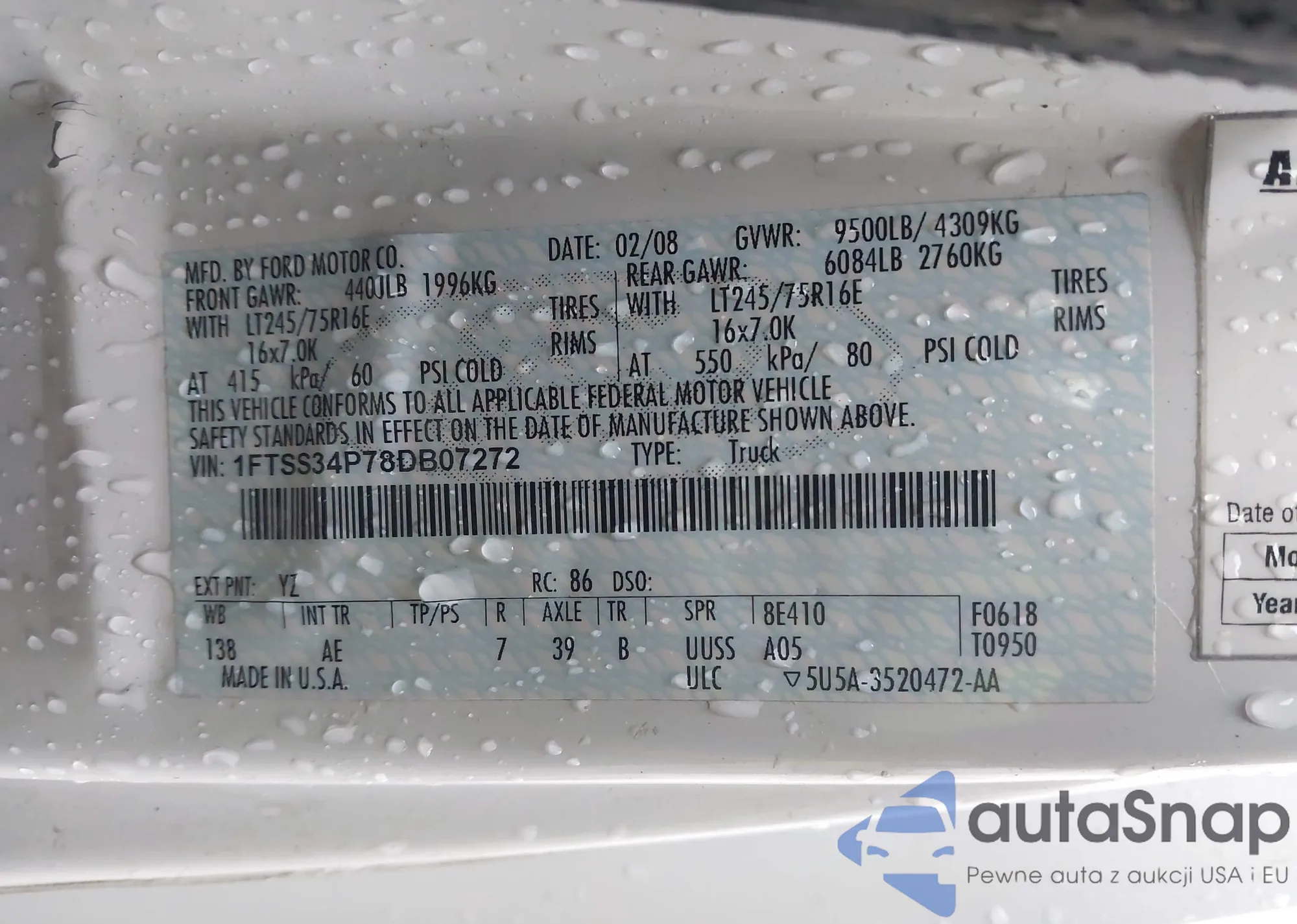 VIN: 1FTSS34P78DB07272