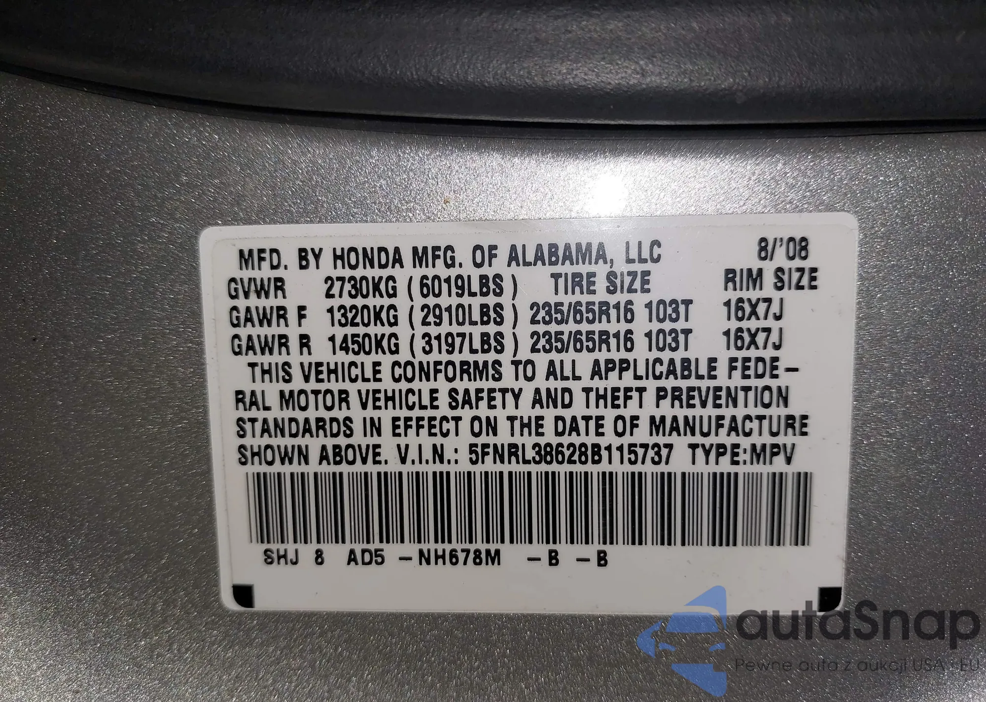 Samochód Honda Odyssey 2008 (VIN 5FNRL38628B115737) był już licytowany 1 razy i/lub sprzedaje go niezweryfikowany sprzedawca. Zalecamy raport Carfax i potwierdzenie możliwości rejestracji pojazdu przed zakupem.