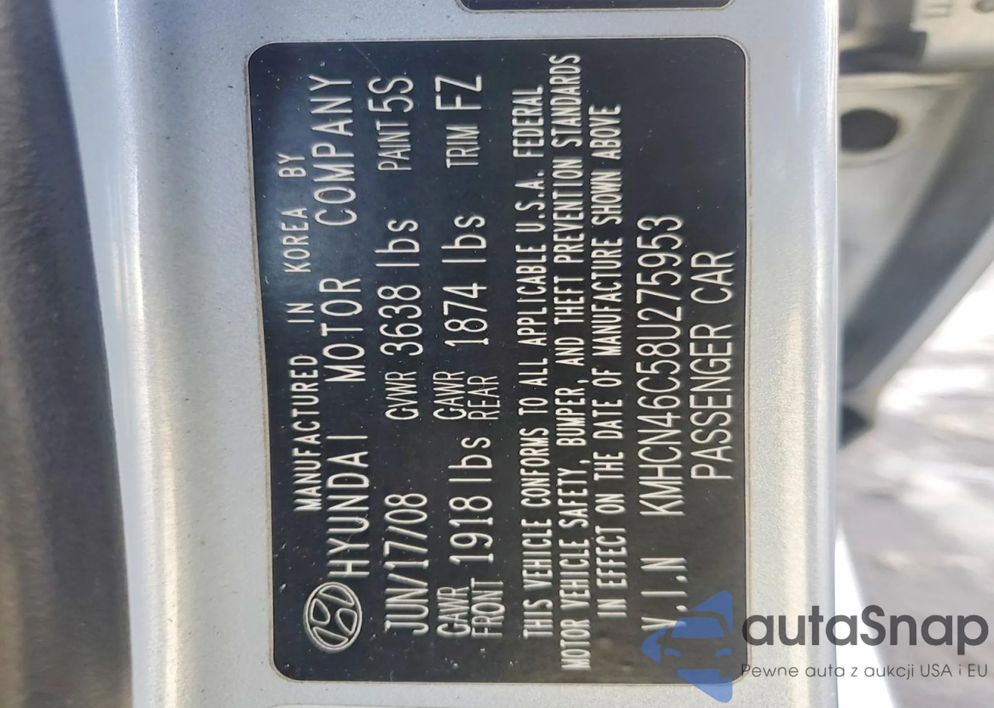 • VIN: KMHCN46C58U275953