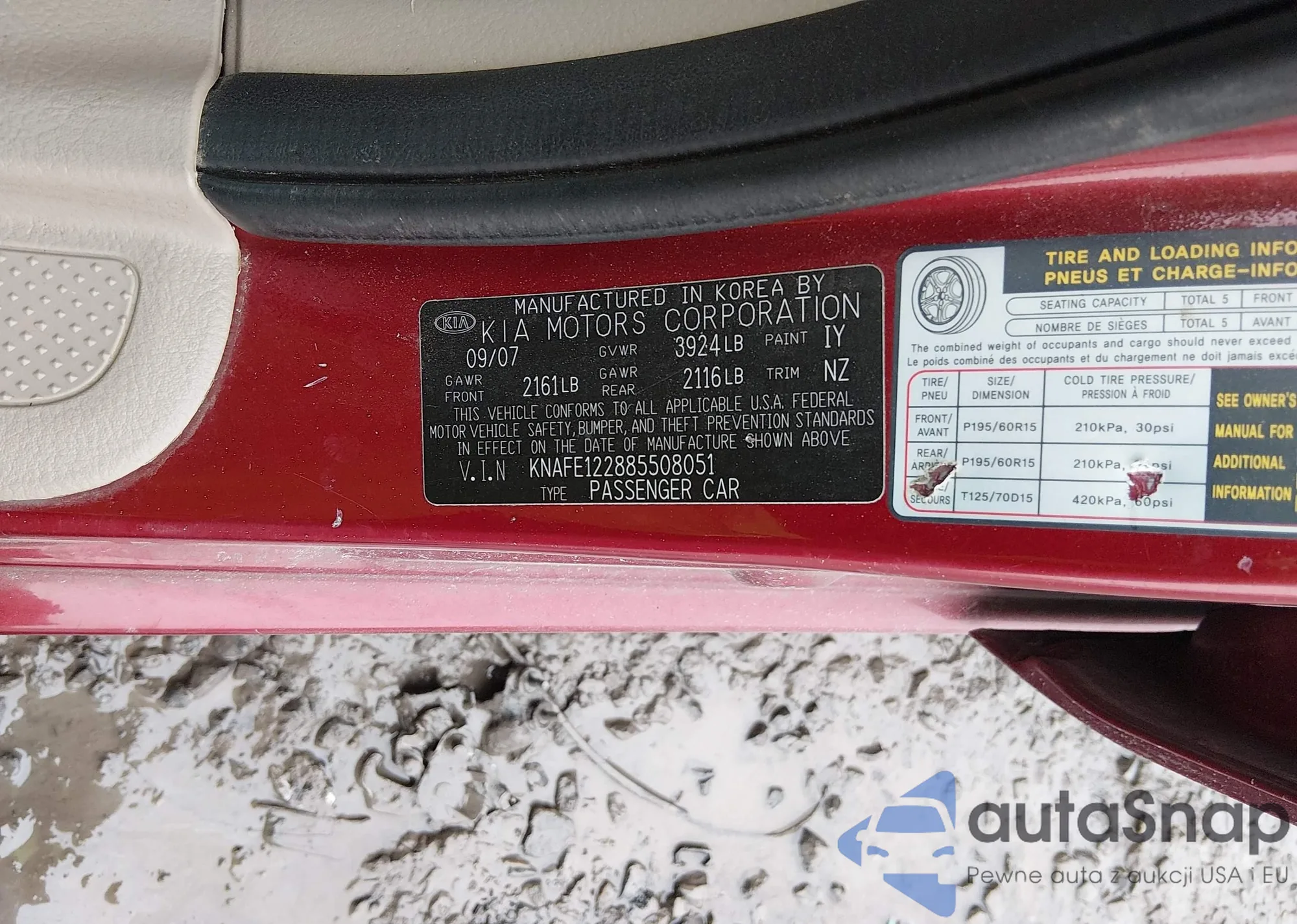 • VIN: KNAFE122885508051