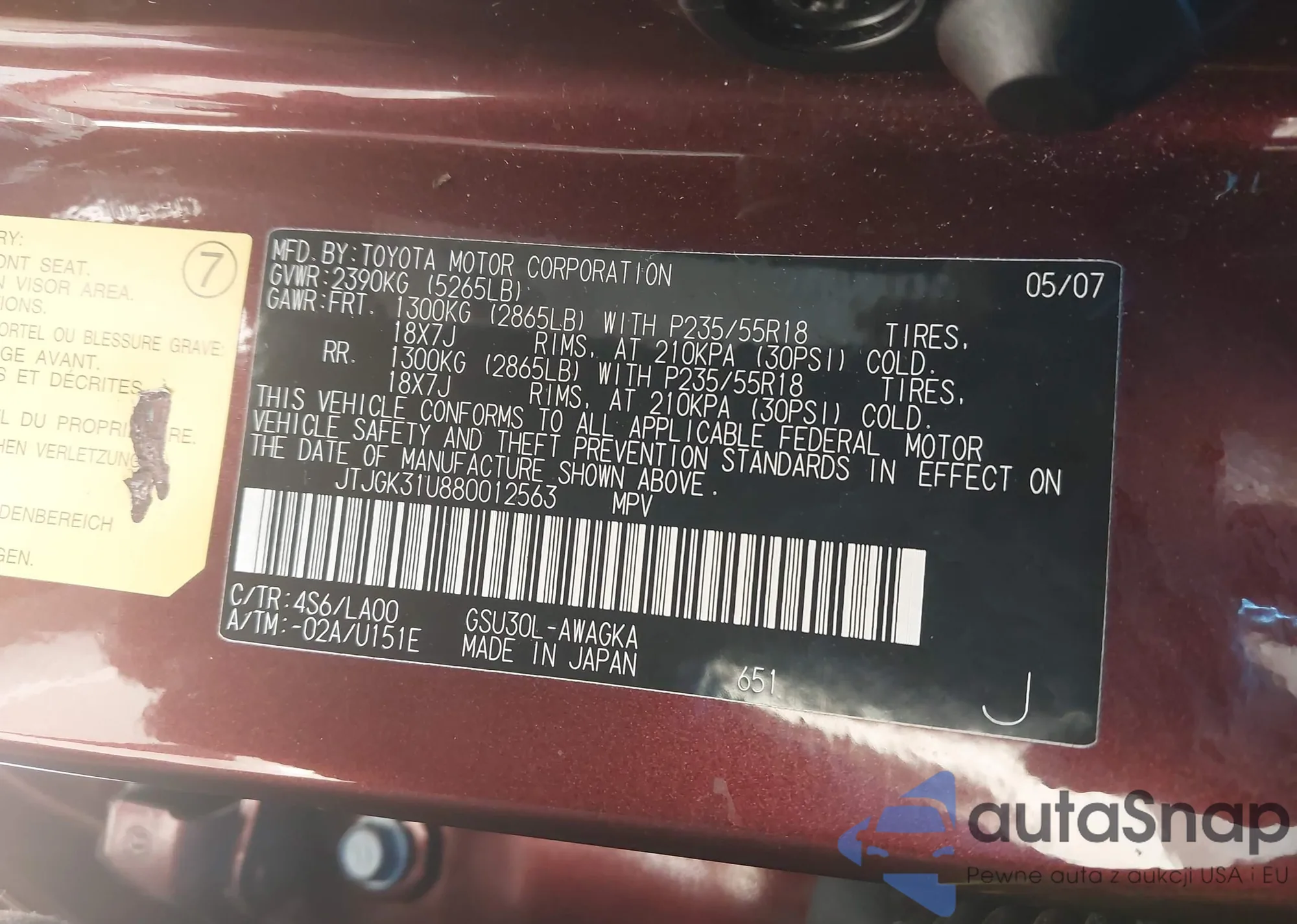 Samochód Lexus RX 2008 (VIN JTJGK31U880012563) nie był wcześniej licytowany. Dokumenty są czyste, przebieg odpowiada lub jest niższy niż średnia rynku. Sprzedaje go firma ubezpieczeniowa – polecamy zakup. Dostawa do portu zajmie ok. 6–8 tygodni.