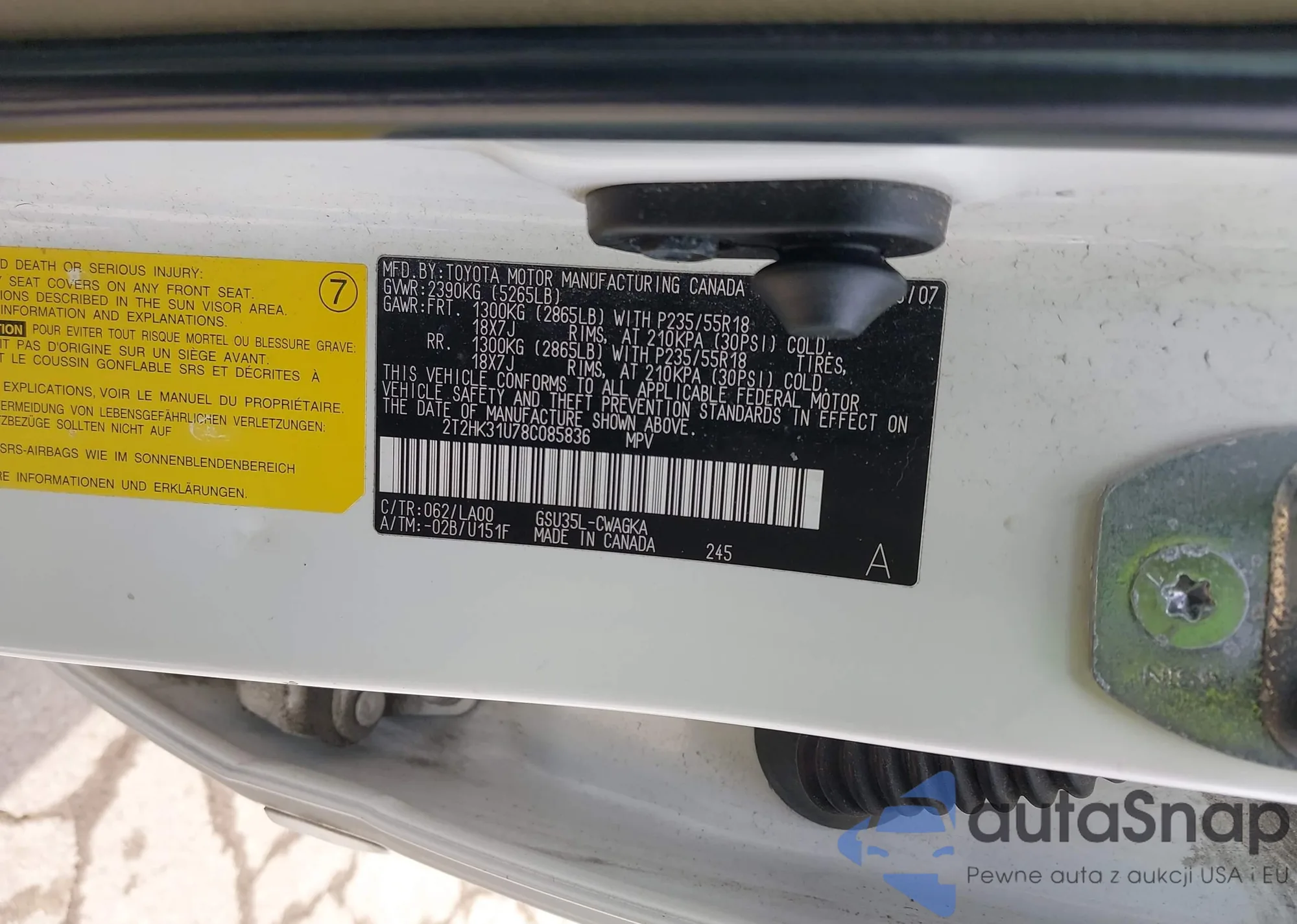 VIN: 2T2HK31U78C085836