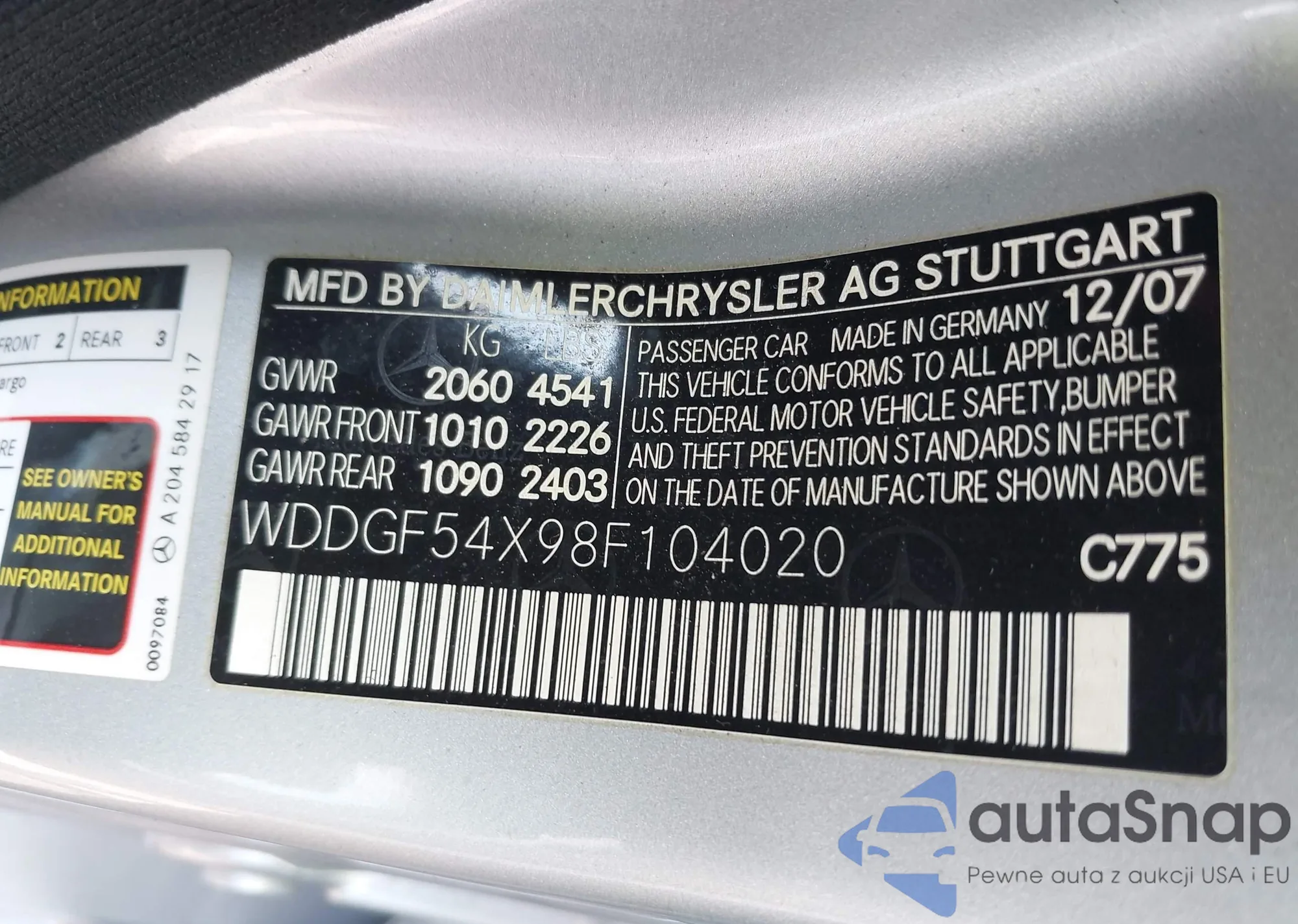 • VIN: WDDGF54X98F104020