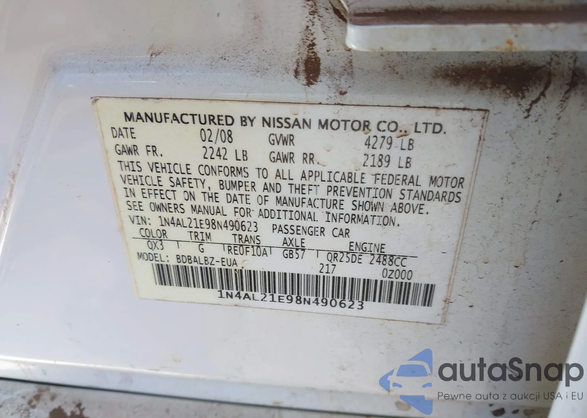 Nissan Altima 2008 – Historia pojazdu (sprzedany na IAAI)