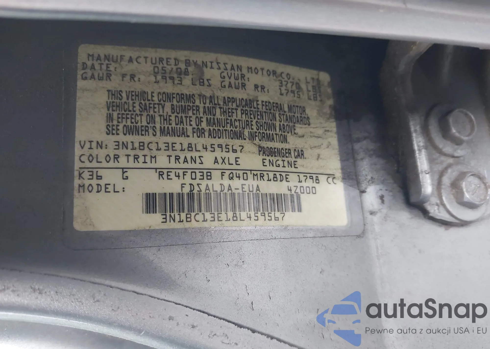 • VIN: 3N1BC13E18L459567