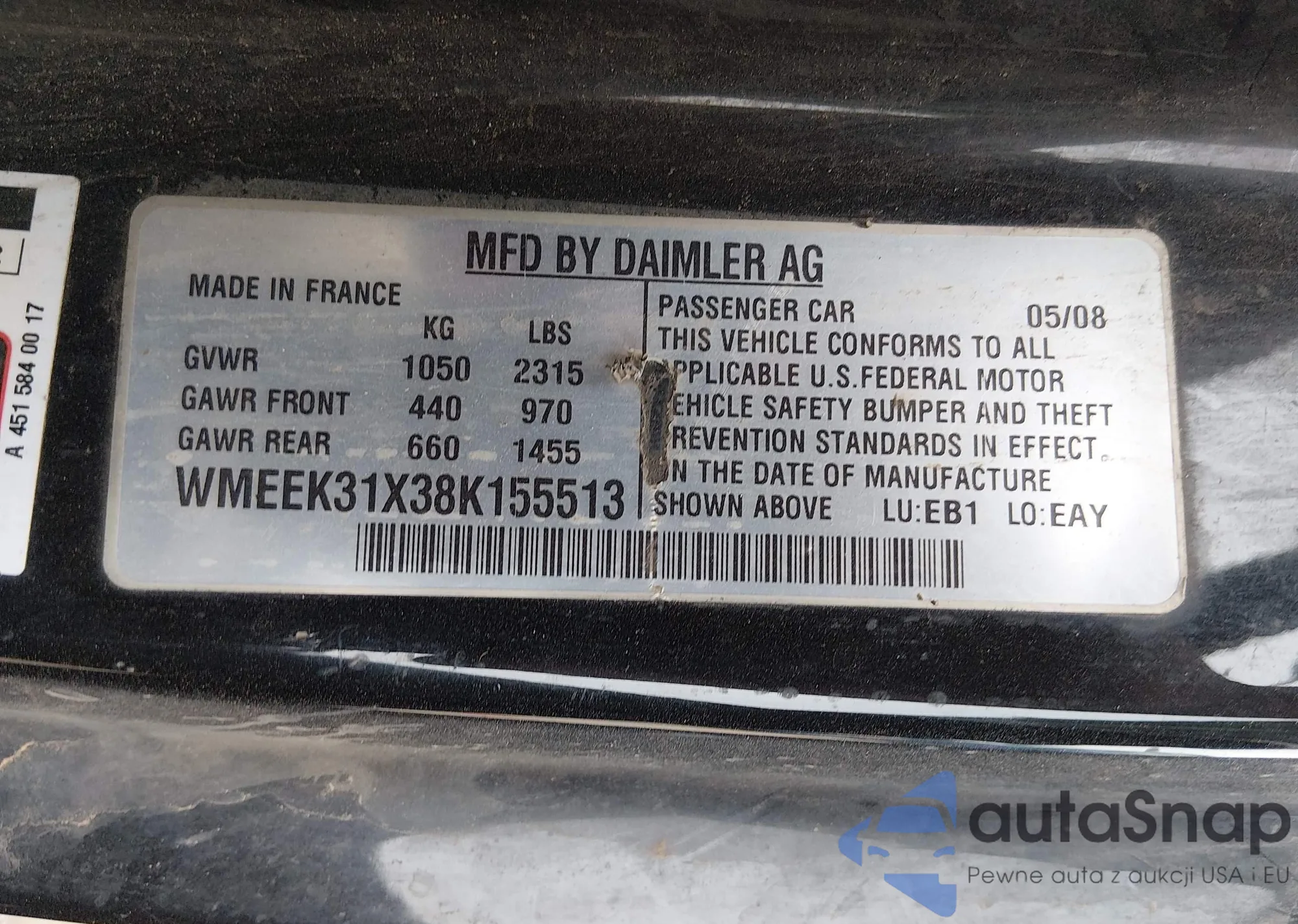 • VIN: WMEEK31X38K155513