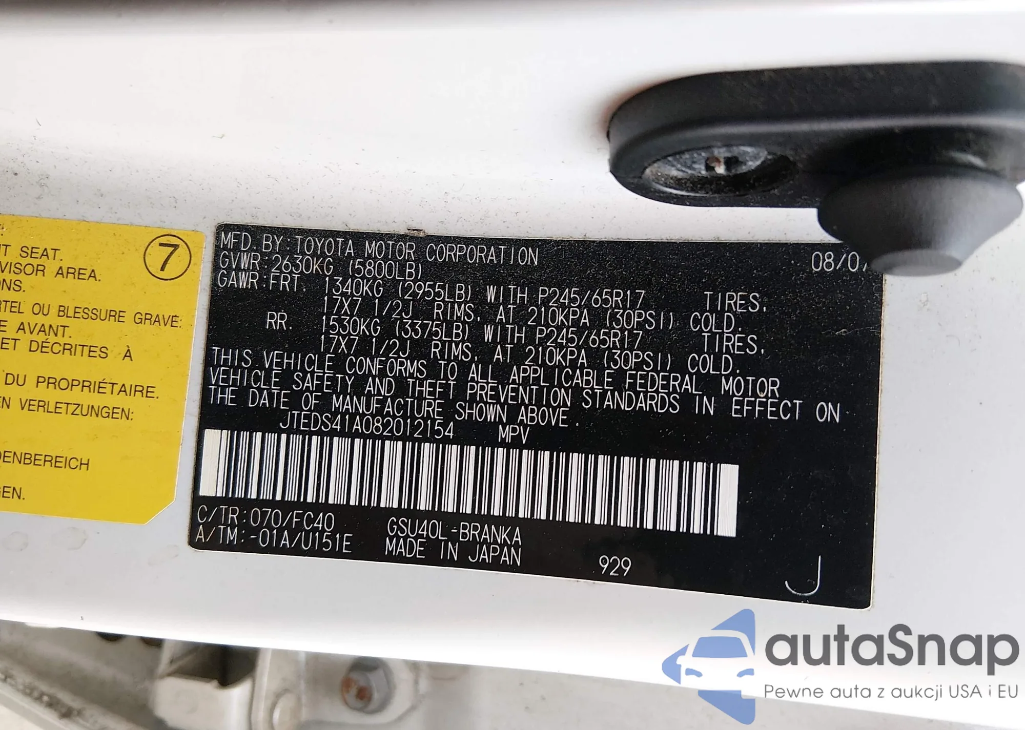 • VIN: JTEDS41A082012154