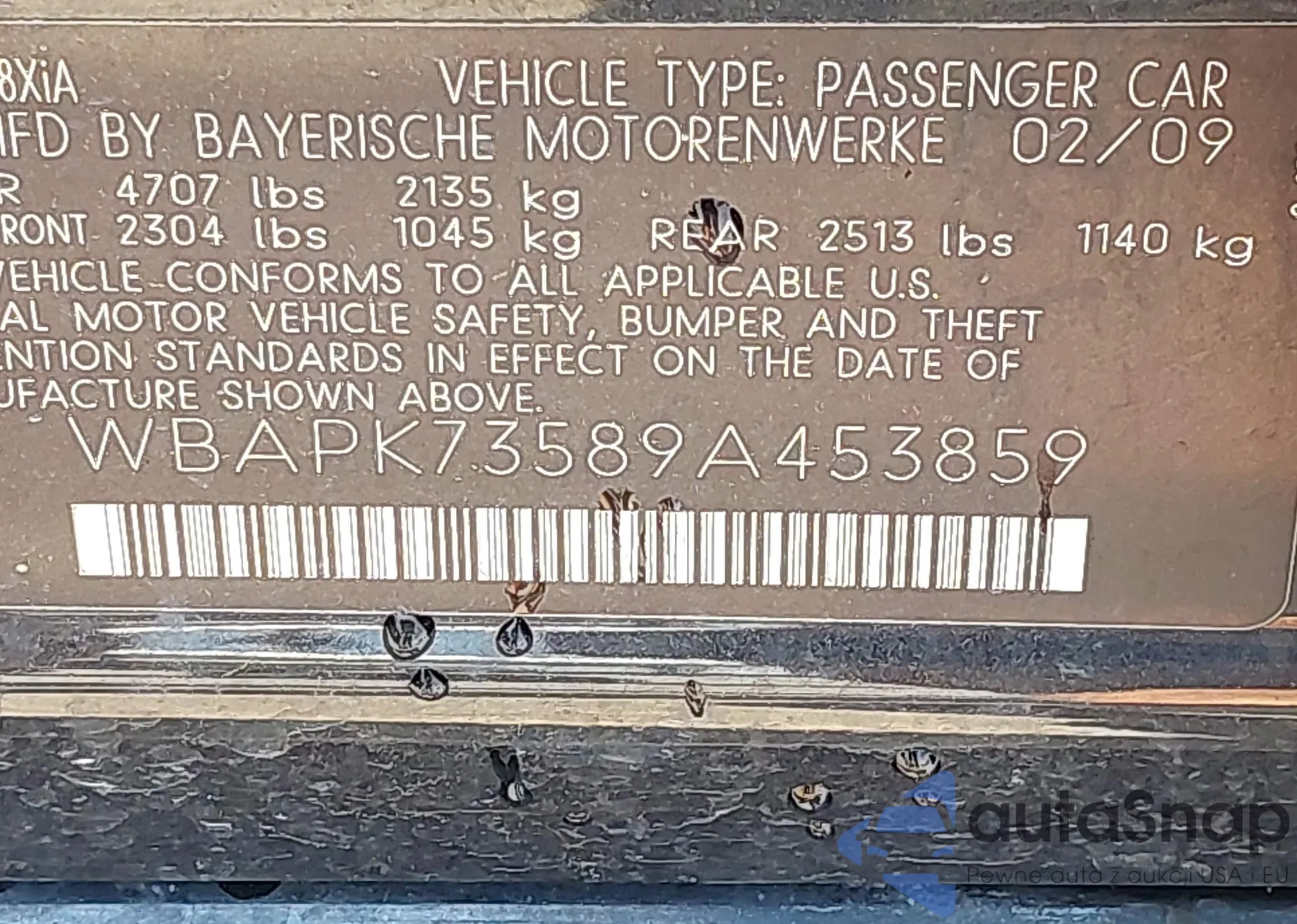 • VIN: WBAPK73589A453859