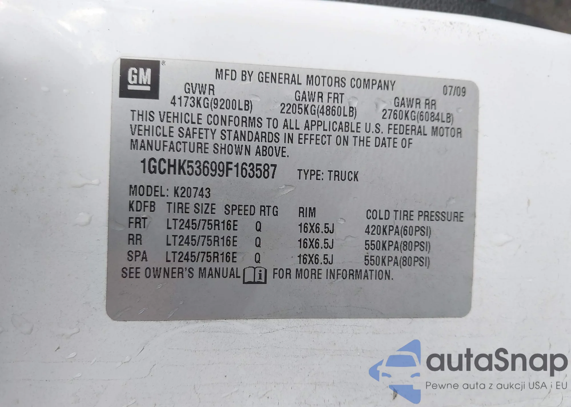 VIN: 1GCHK53699F163587