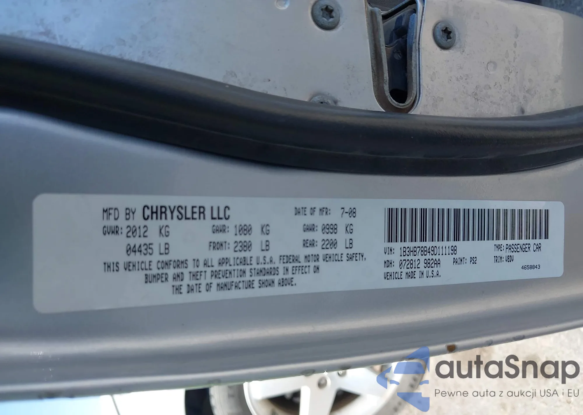 VIN: 1B3HB78B49D111198