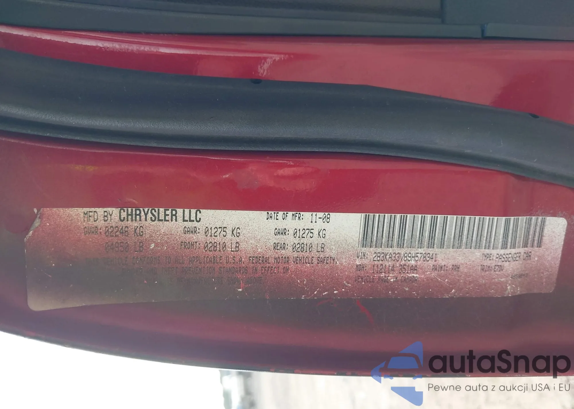 Samochód Dodge Charger 2009 (VIN 2B3KA33V89H578341) sprzedaje go niezweryfikowany sprzedawca. Zalecamy raport Carfax i potwierdzenie możliwości rejestracji pojazdu przed zakupem.
