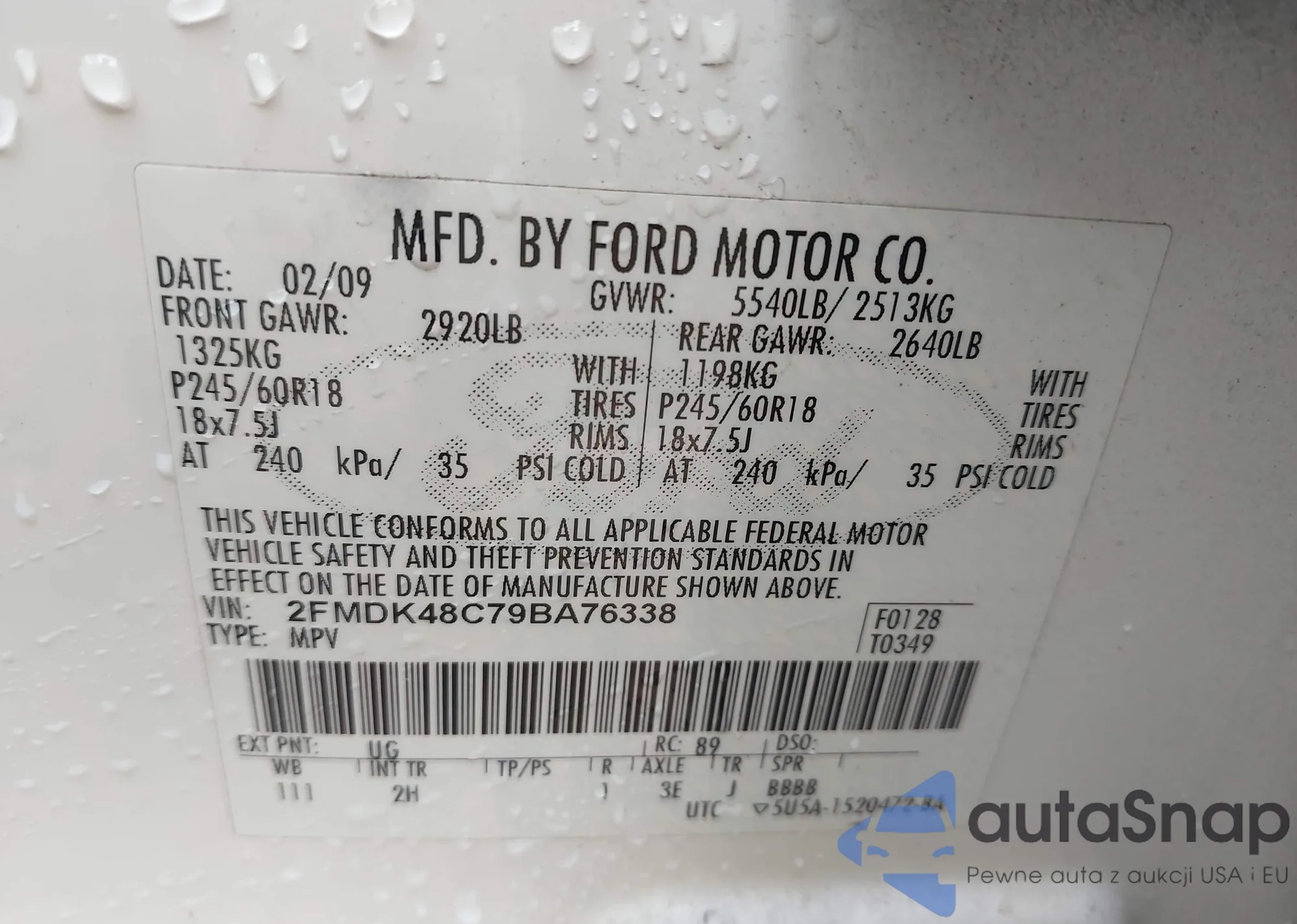 VIN: 2FMDK48C79BA76338