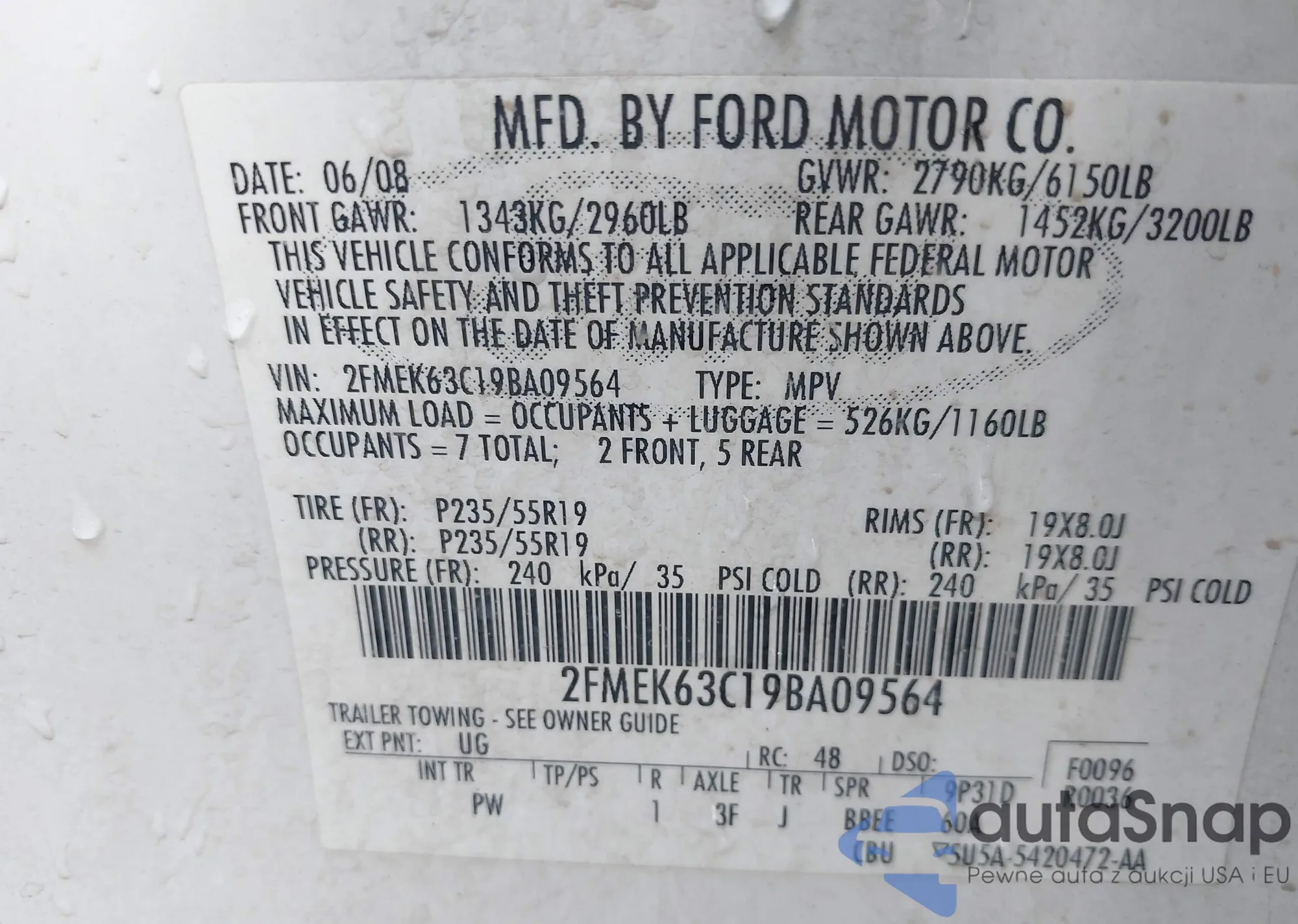 VIN: 2FMEK63C19BA09564