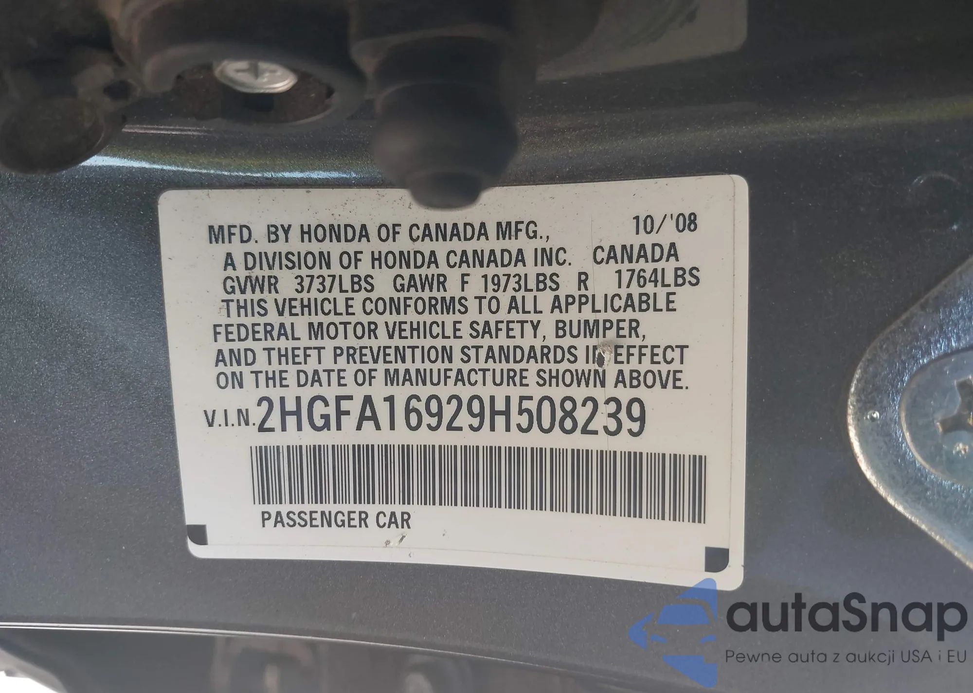 VIN: 2HGFA16929H508239